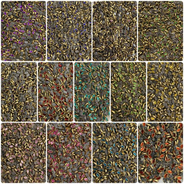 Marquise (Eye/Leaf) Shaped Kundan Stones in Gold Settings (3×6)(50g)