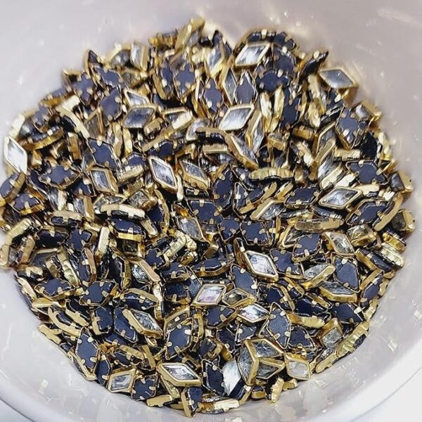 Premium Diamond/Rhombus Kundan Stones – White & Champagne Faceted Crystals in Gold-Plated Brass Settings for Aari Embroidery, Bridal Couture, and Jewelry Making(50g)