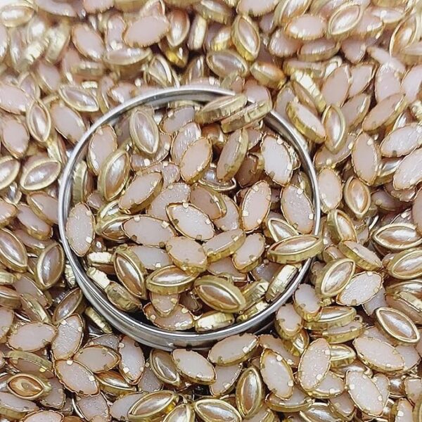 Premium Ceramic /Peach Rose Gold Kundan Stones – Teardrop Rivoli Crystals with Gold Plated Rim for Aari, Zardosi, and Jewelry Making(4×6) (Pack of 50g)