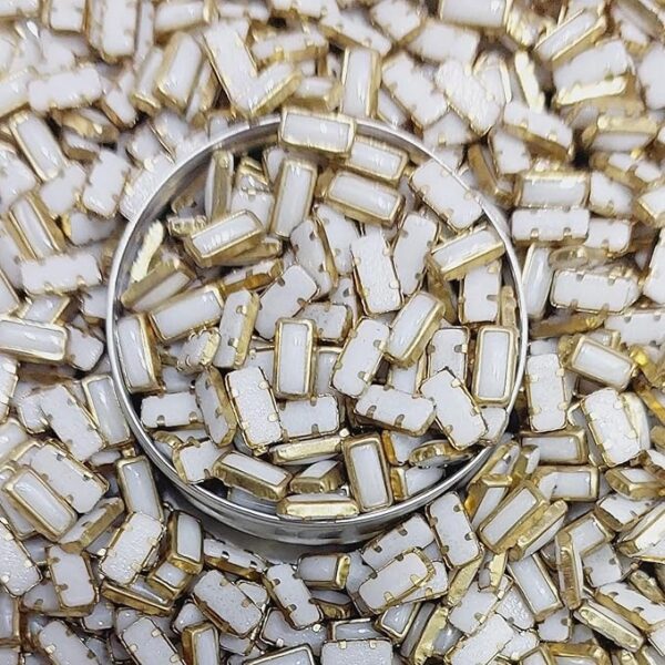 Premium White Glossy Kundan Stones with Gold-Toned Border(Rectangle/Stick Shape 3×7) (Pack of 50g)