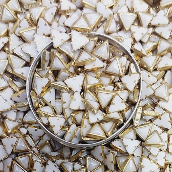 Premium White Glossy Kundan Stones with Gold-Toned Border(Triangle Shape6x6x6) (Pack of 50g)