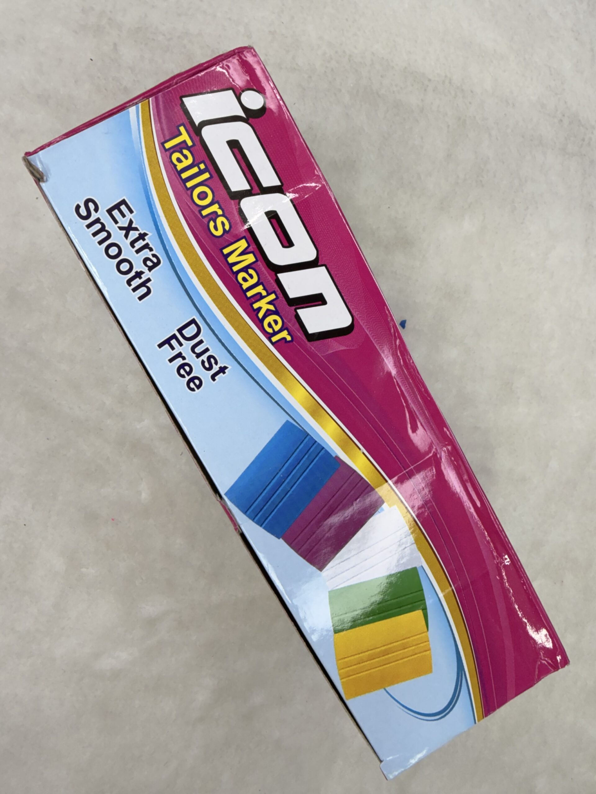 Aap This is a box of iCON Tailors Marker, which appears to be a modernized version of traditional tailors’ chalk, designed for better performance.