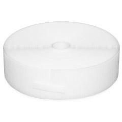 a piece of white hook and loop fastener tape, a versatile and easy-to-use alternative to zippers, buttons, or snaps. It features two separate components that interlock to provide a secure, temporary closure.