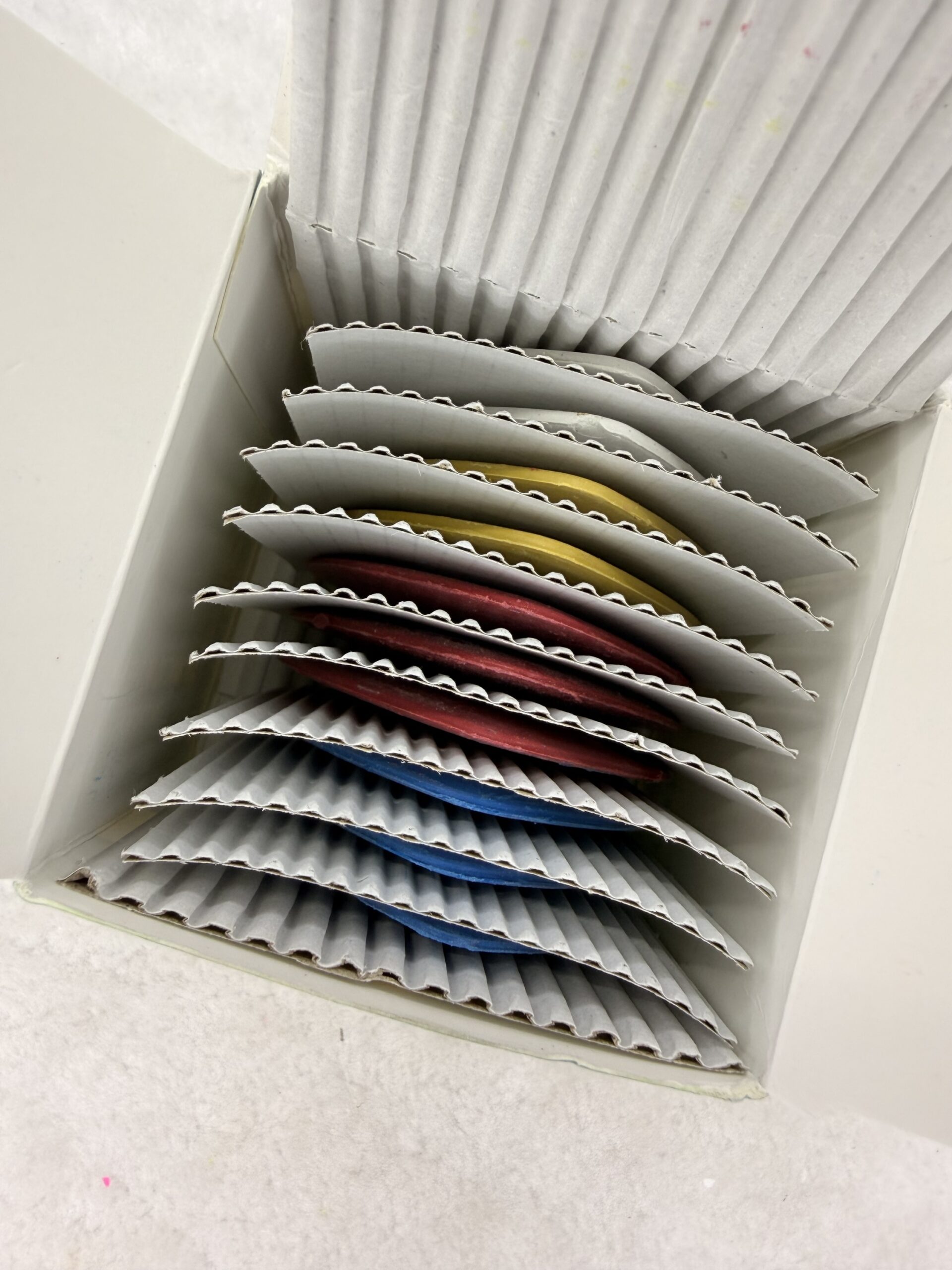This is a set of multi-colored Tailors’ Chalk from the “Flower Butterfly” brand, a classic marking tool for sewing and garment making.