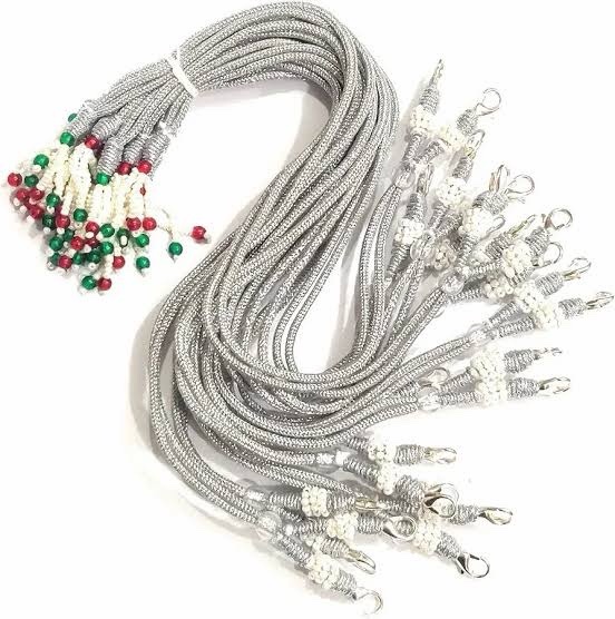 These silver-colored back ropes are essential jewelry-making components designed for heavy necklaces, chokers, and bridal sets. They combine high-strength metallic threading with decorative traditional elements for a polished look.