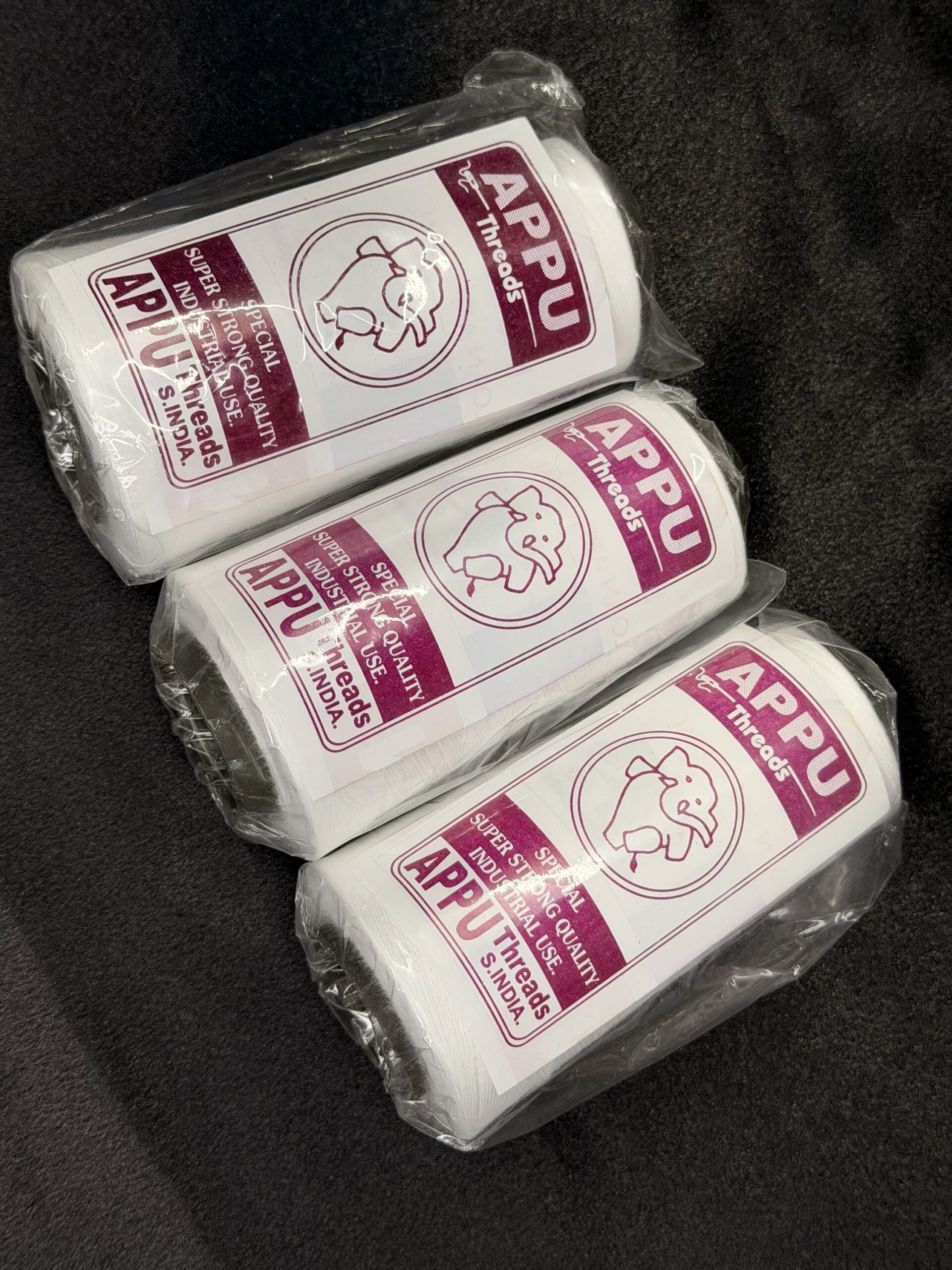 This high-performance industrial sewing thread from APPU Threads is engineered for maximum durability and professional results. Labeled as “Special Super Strong Quality,” it is designed to withstand the rigorous demands of industrial machinery and heavy-duty sewing projects. Manufactured in South India, this premium white thread features a high-tenacity construction that ensures consistent tension and minimizes breakage during high-speed operation.