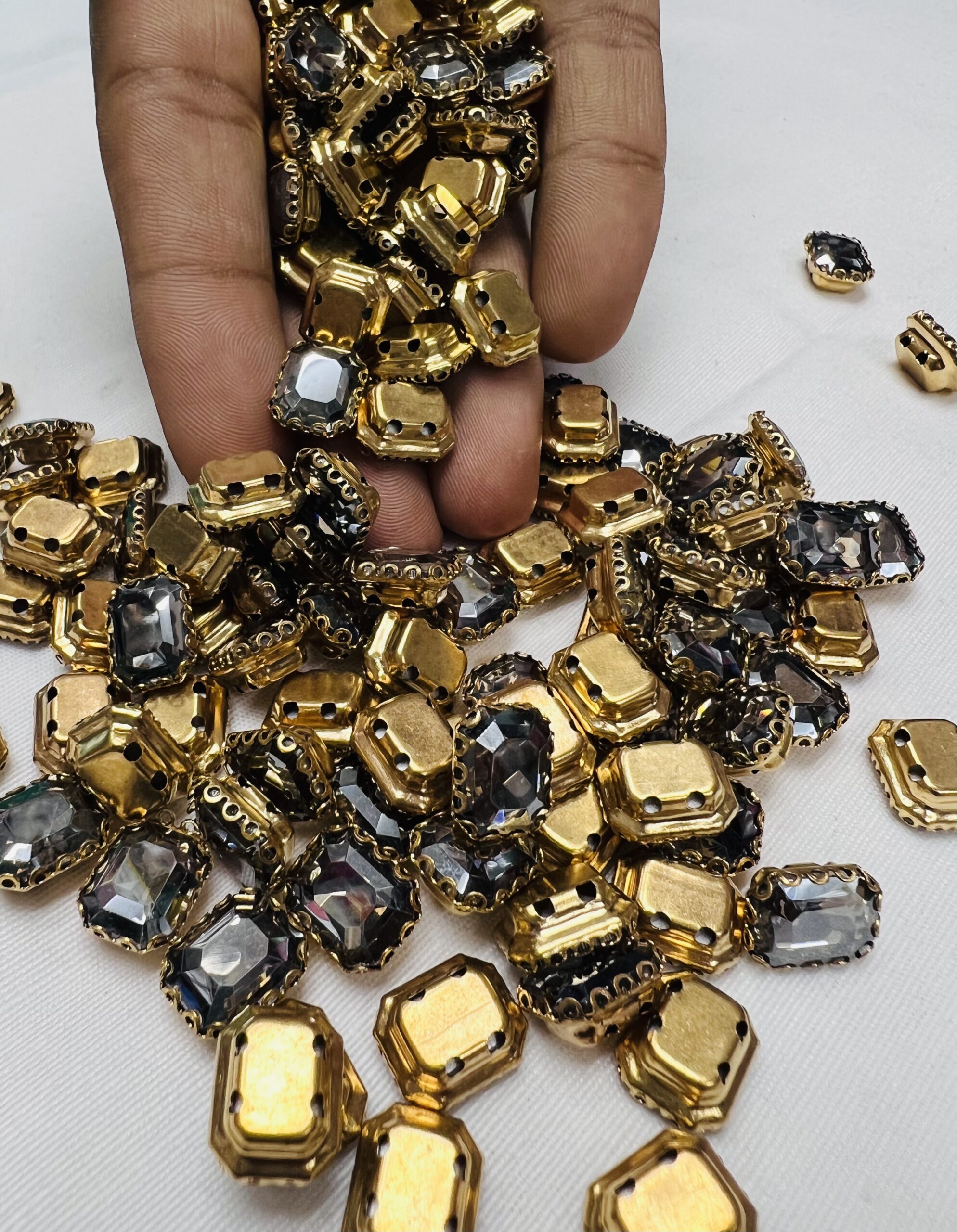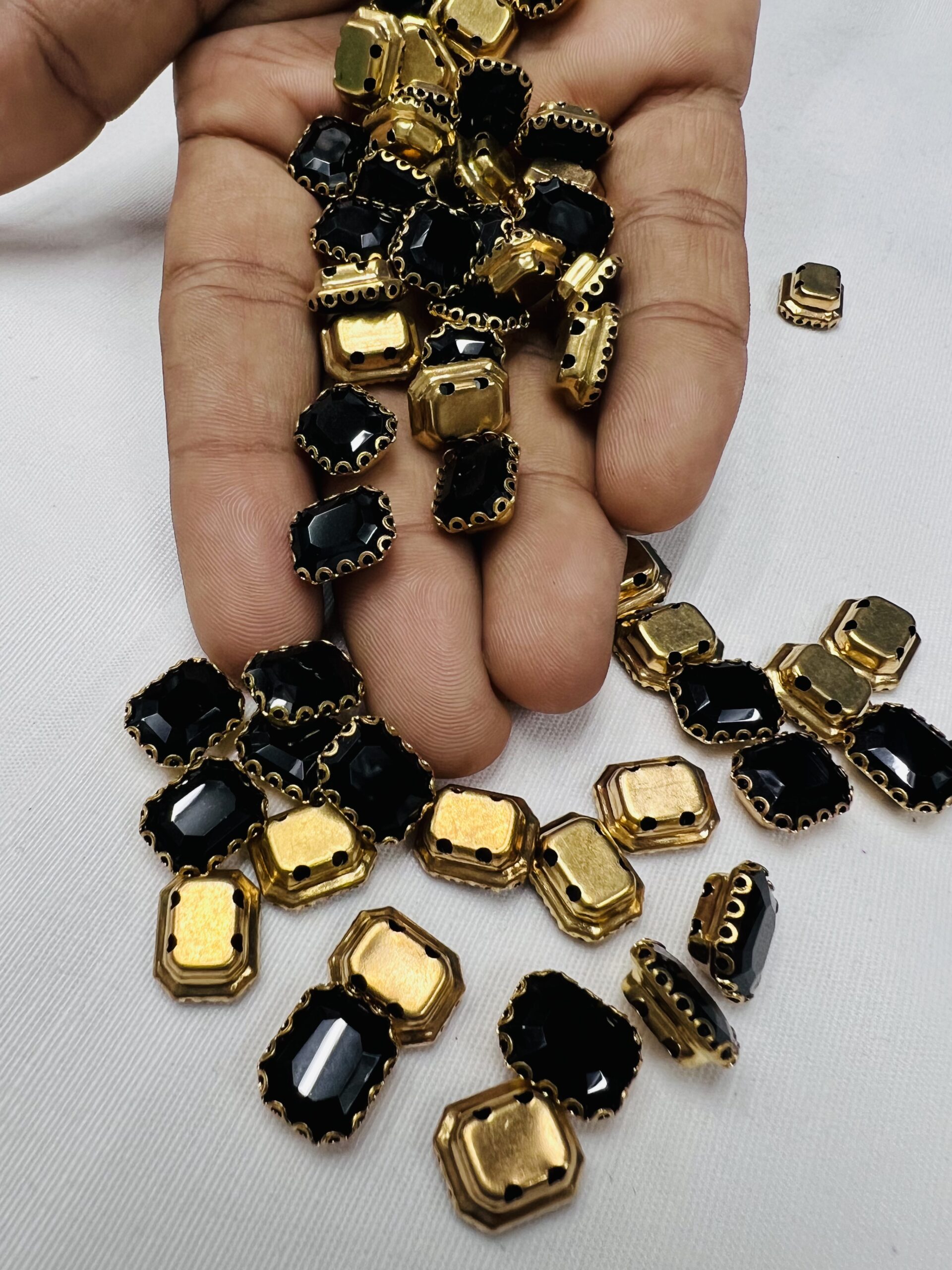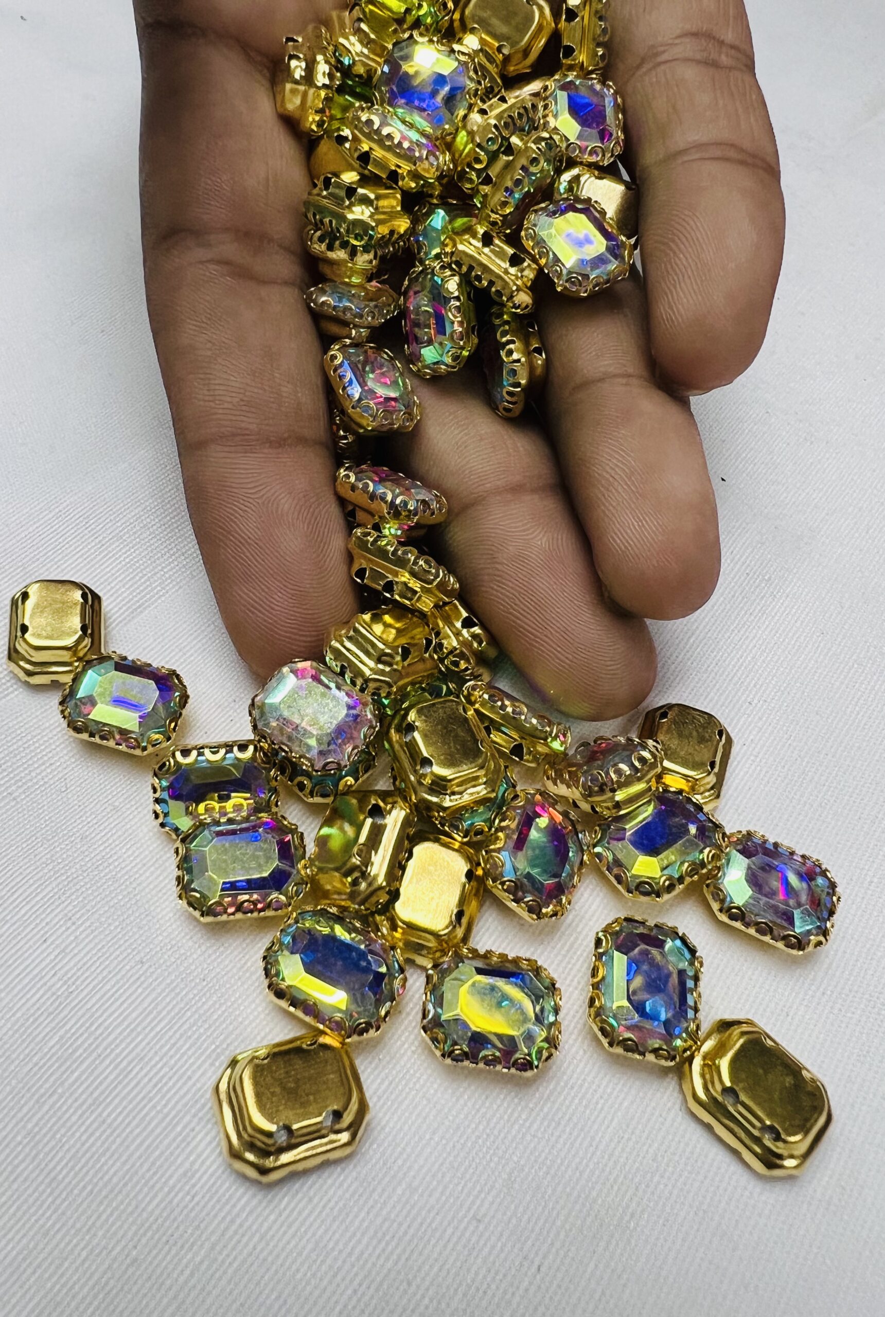 Be the first to review “Rectangle Emerald-Cut Clip Stones | Gold Frame Aari & Jewelry Embellishments(8×10)(20Pc)” Cancel reply