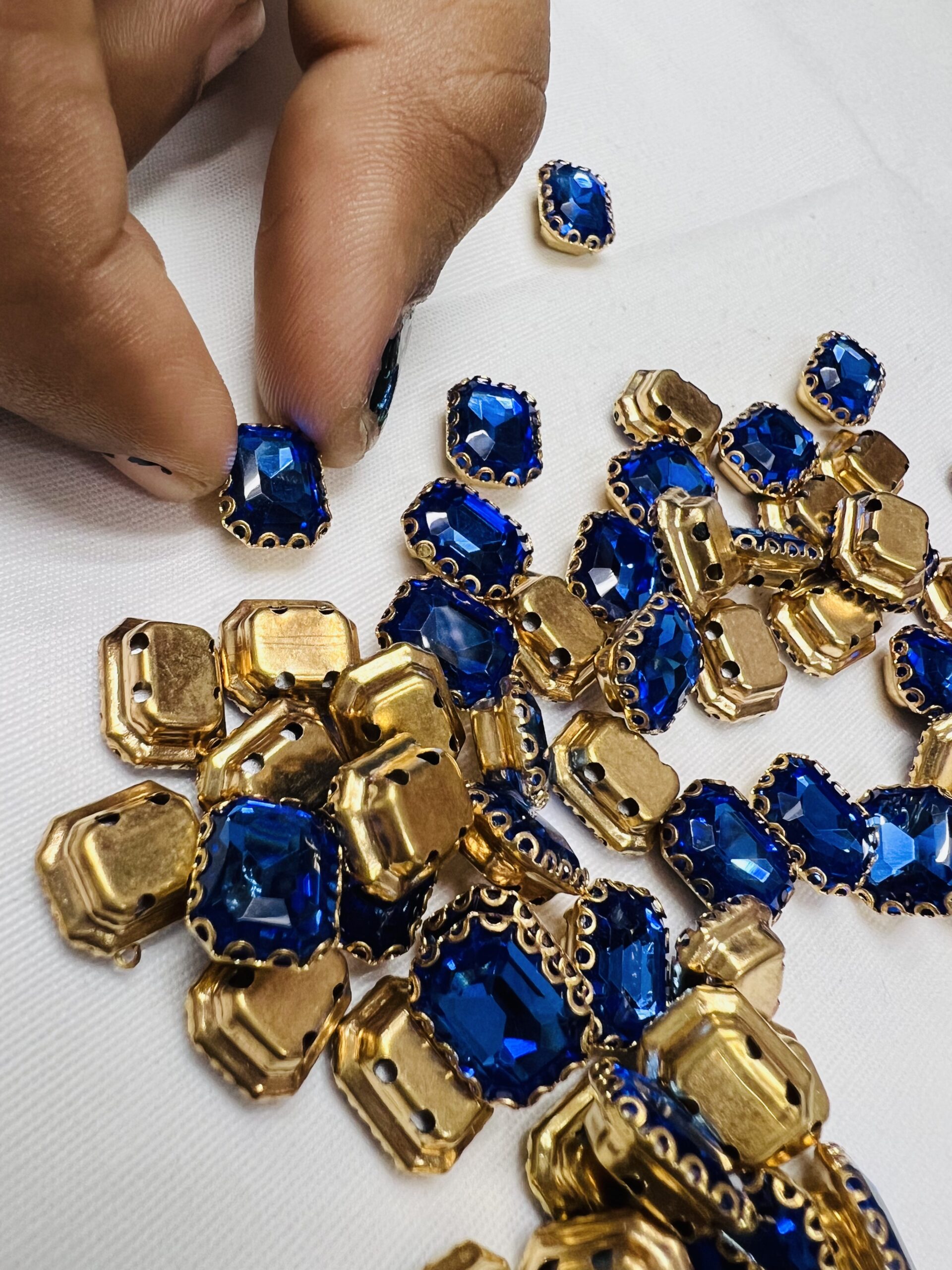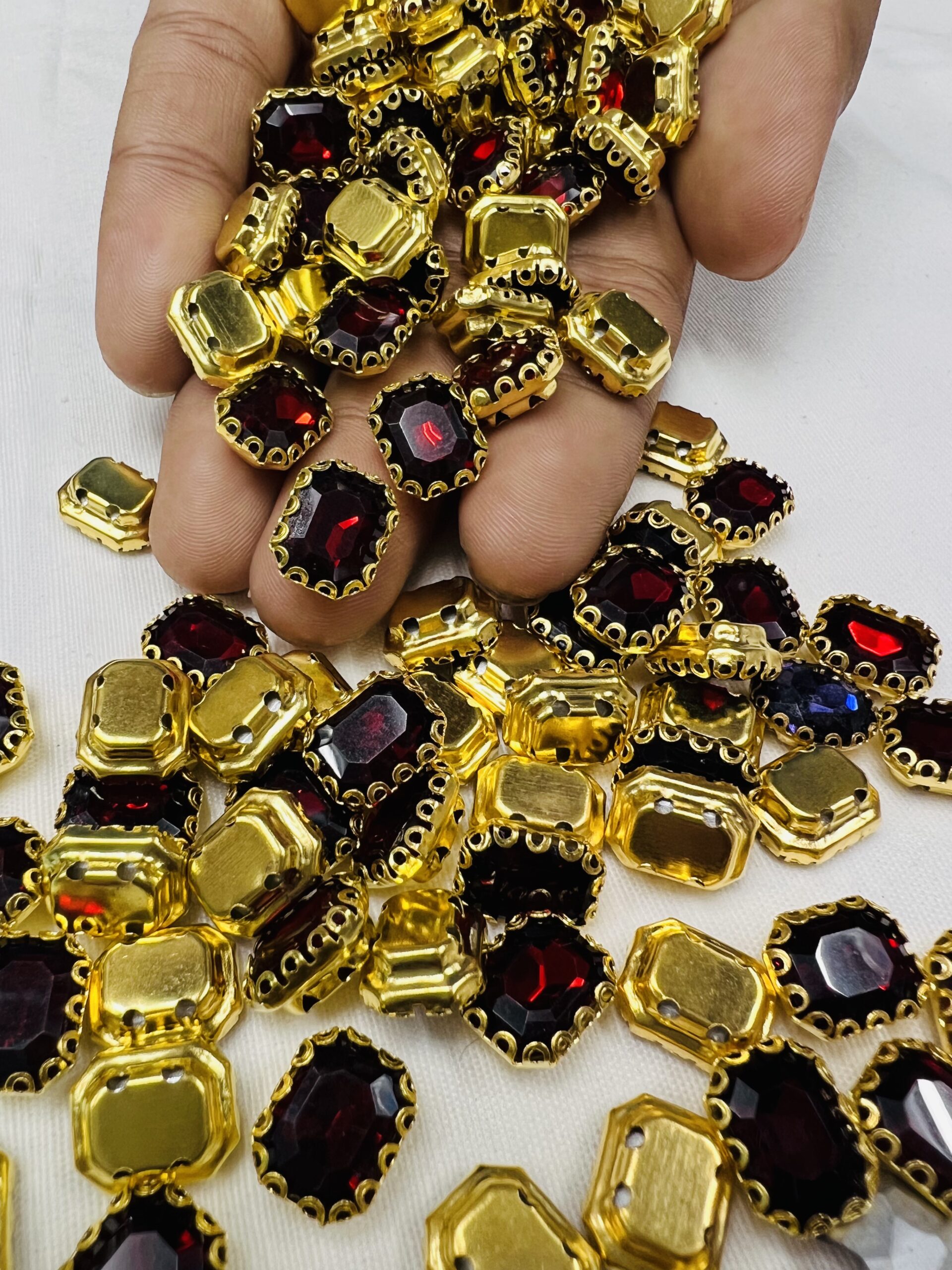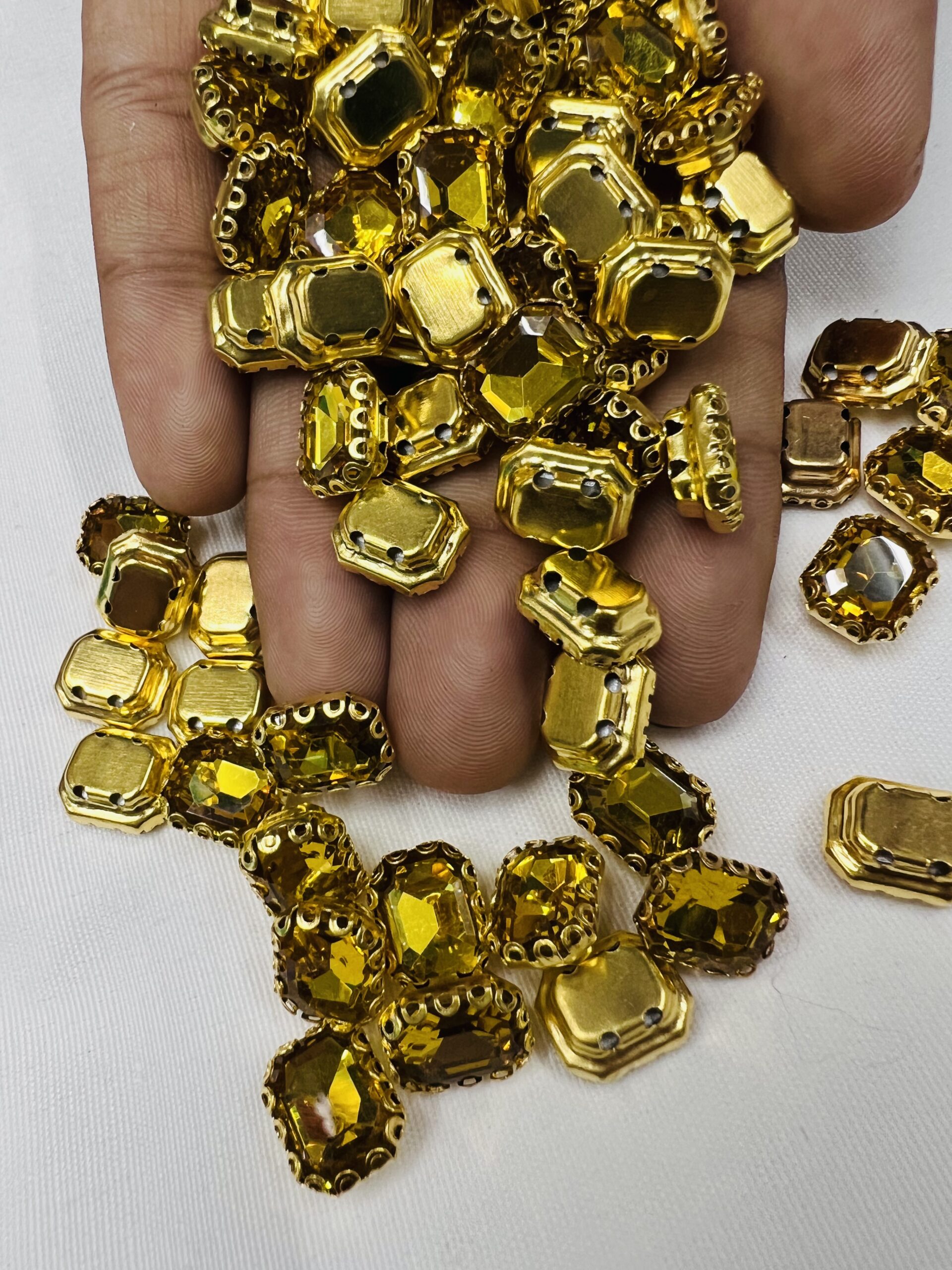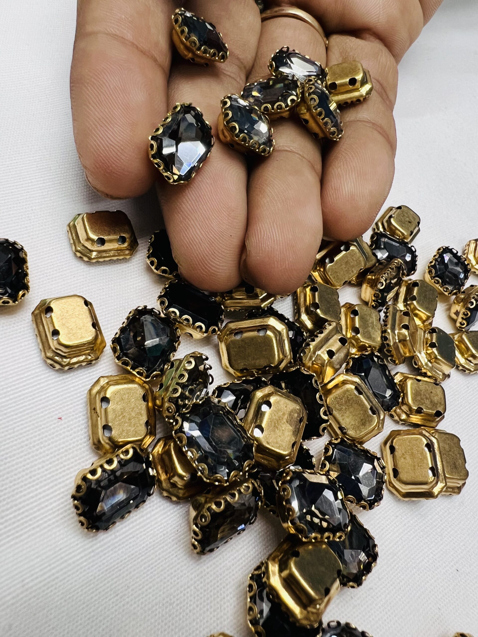 Be the first to review “Rectangle Emerald-Cut Clip Stones | Gold Frame Aari & Jewelry Embellishments(8×10)(20Pc)” Cancel reply