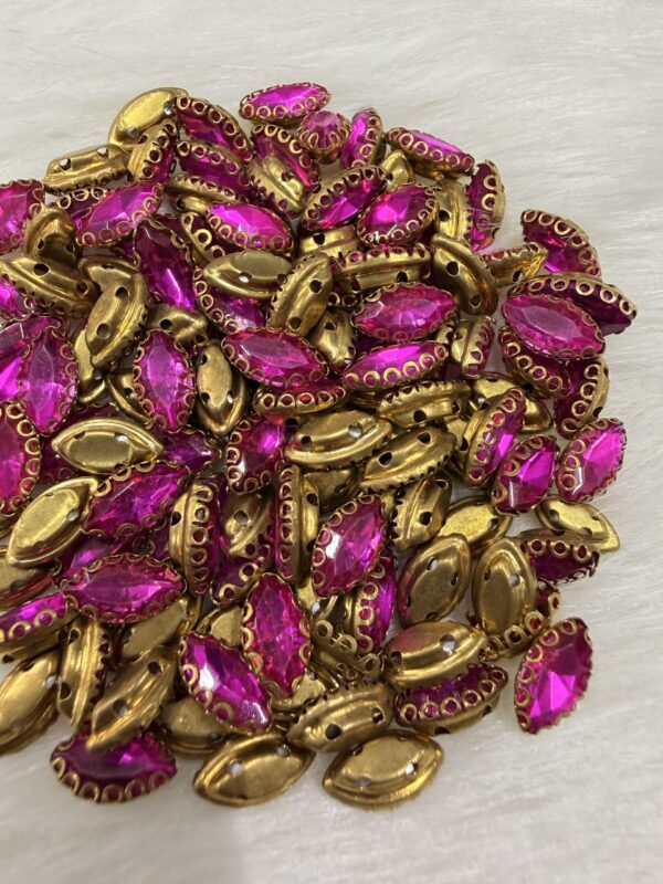 Tailor-made for the intricate art of Aari embroidery and handcrafted jewelry, these oval clip stones are a staple for every artisan’s kit. Each stone is encased in a high-shine gold-plated frame, providing the “lift” and definition required for traditional Zardosi and Maggam work. Whether you are detailing a bridal lehenga or crafting a statement necklace, these stones offer the perfect blend of traditional elegance and modern durability.
