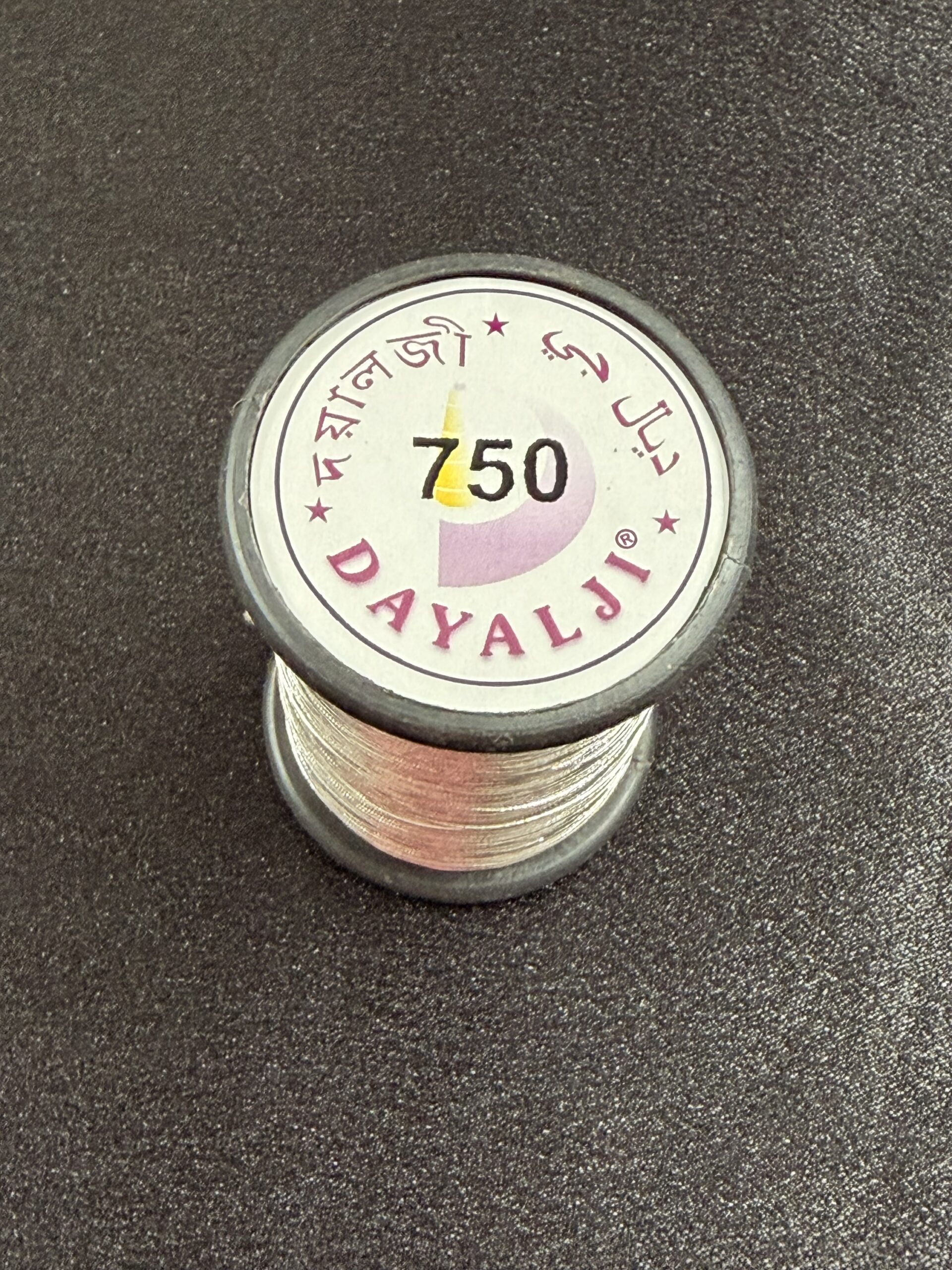 This high-quality Dayalji 750 Metallic Thread is a premium choice for intricate embroidery, traditional handwork, and decorative stitching. Known for its brilliant metallic luster and smooth texture, this silver zari thread is designed to add a touch of elegance and luxury to any fabric. Whether you are working on bridal wear, festive garments, or craft projects, the Dayalji 750 offers the durability and shine required for professional-grade results.