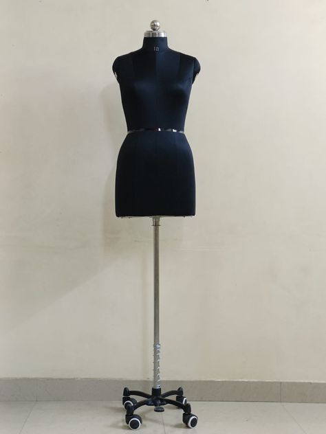 This professional-grade dress form is designed for precision tailoring, draping, and garment display. Featuring a pinnable black fabric torso and a height-adjustable base with easy-glide wheels, it is the ideal tool for fashion designers, boutiques, and home sewists.