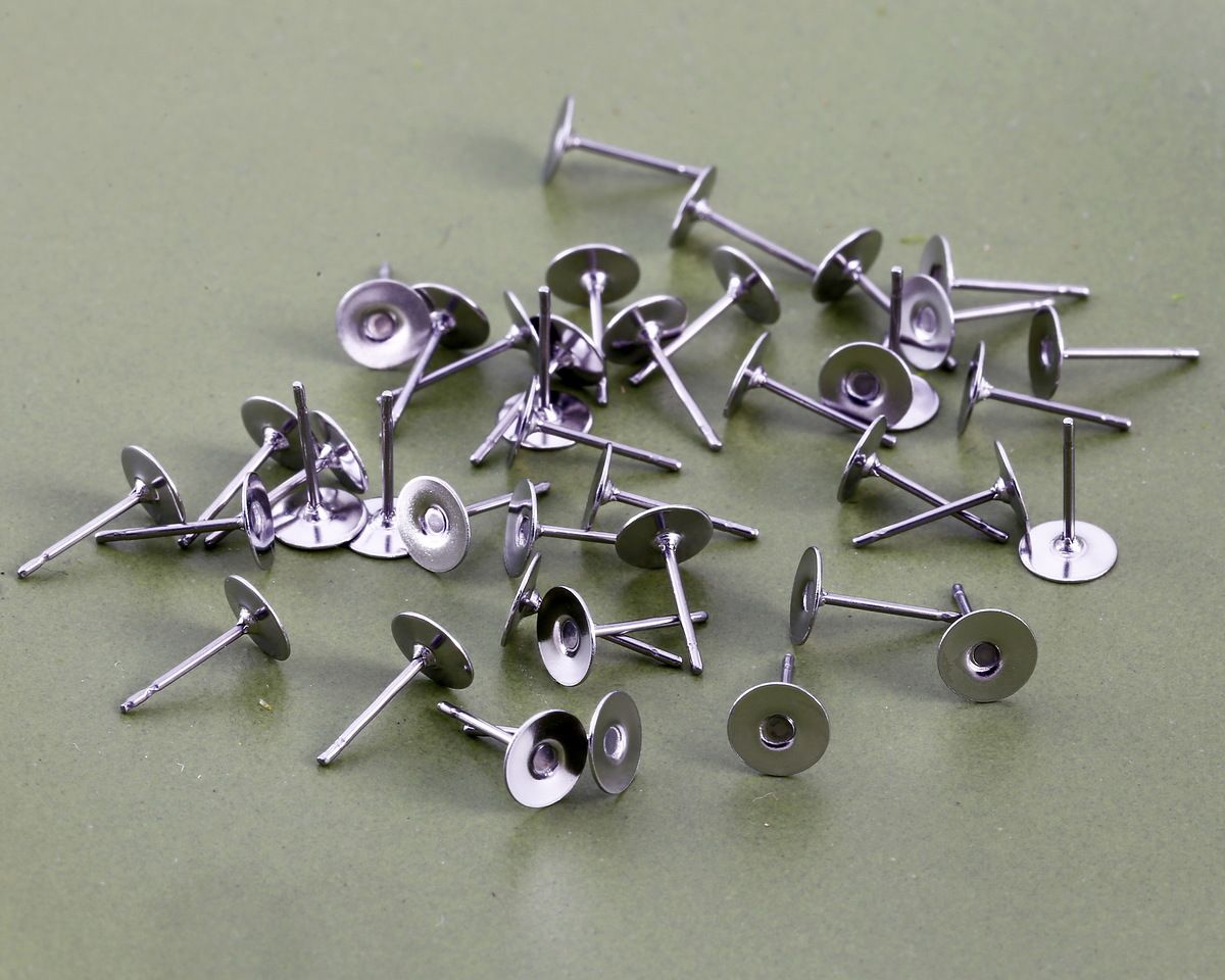 Polished Silver-Tone Earring Stud Posts – Flat Pad Glue-on Bases for DIY Jewelry & Crafting (6mm)