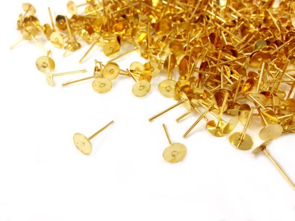 Premium Gold-Plated Earring Stud Posts – Flat Pad Glue-on Bases for DIY Jewelry Making & Earring Design (6mm)