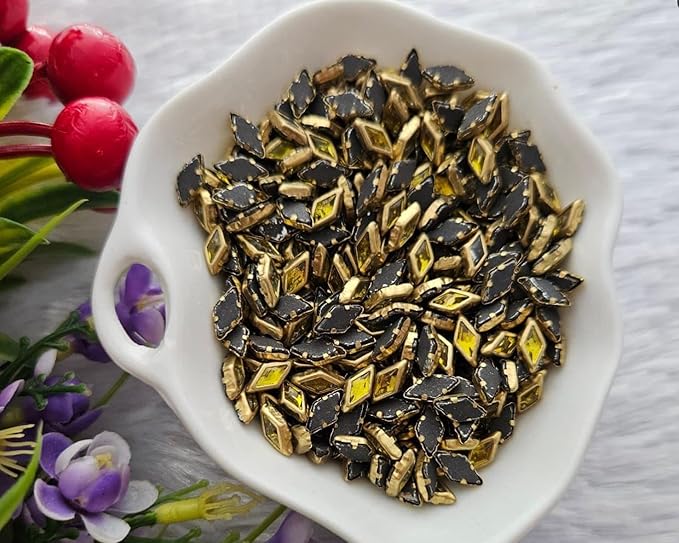 Bring the timeless elegance of traditional Indian craftsmanship to your designs with these high-quality Rhombus Kundan stones. Specifically crafted for Aari and Maggam work, these stones feature a rich, gold-plated casing that secures a brilliant, faceted glass crystal. Their classic diamond shape makes them incredibly versatile for creating intricate “butti” designs, floral borders, or heavy bridal neckline patterns. These are a must-have for designers looking to add a royal, three-dimensional finish to sarees, lehengas, and handmade ethnic jewelry.
