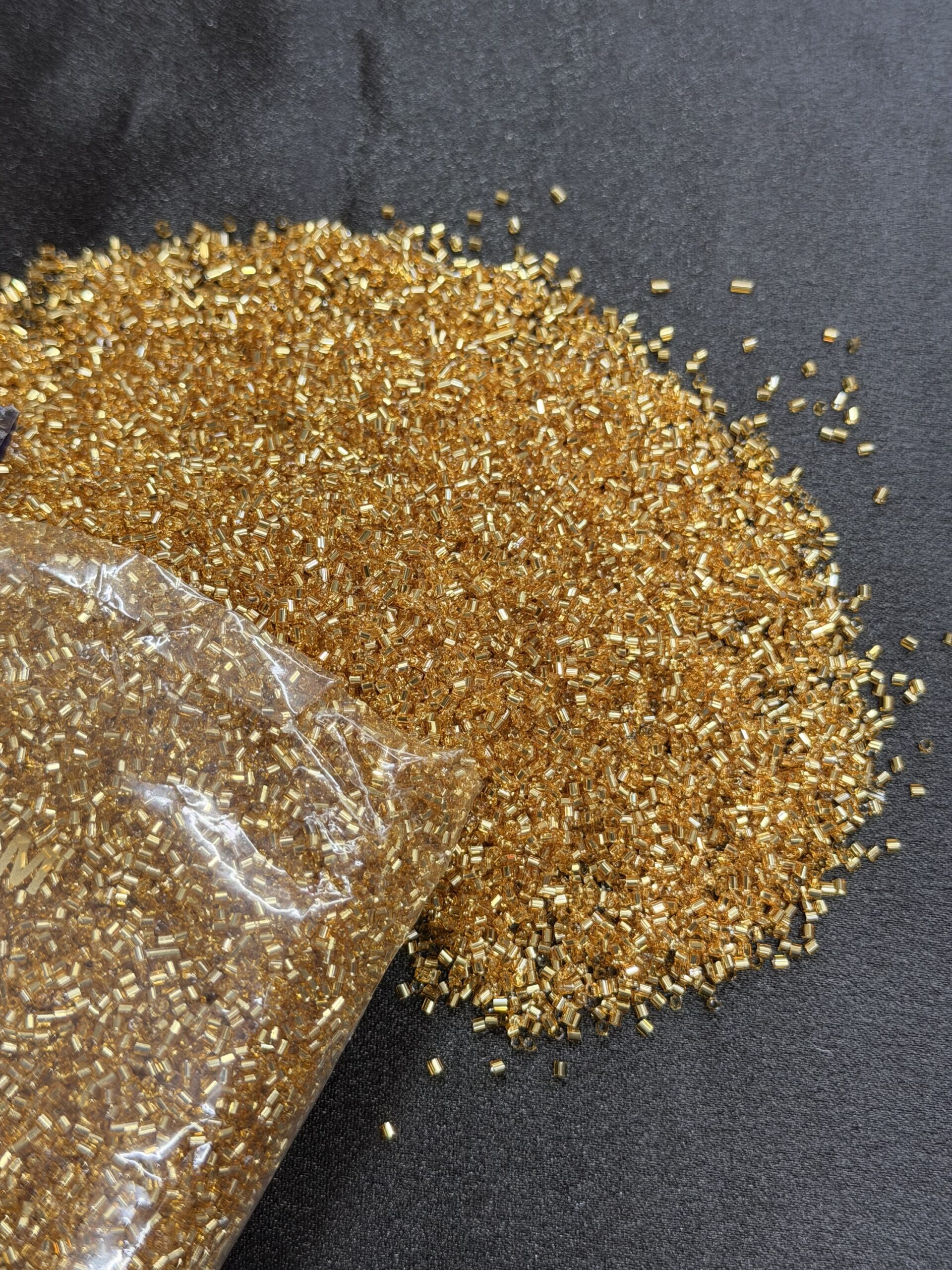 Lecraft Royal Premium Golden Cutdana – Faceted Glass Cut Beads (Karthana) for Aari ; Zardosi Embroidery(Size-14/0)