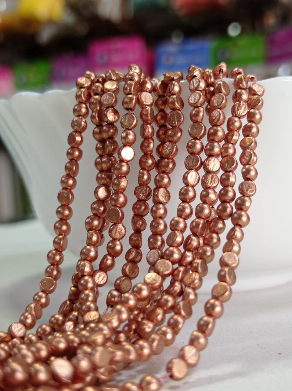 LeCraft Royal Premium Metallic Half Beads – 4mm Faceted Copper for Aari Work & Embroidery(100Beads x 12Lines per bunch)(5Bunch)