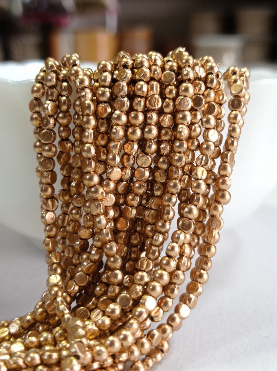 LeCraft Royal Premium Metallic Half Beads – 4mm Faceted Copper for Aari Work & Embroidery(100Beads x 12Lines per bunch)