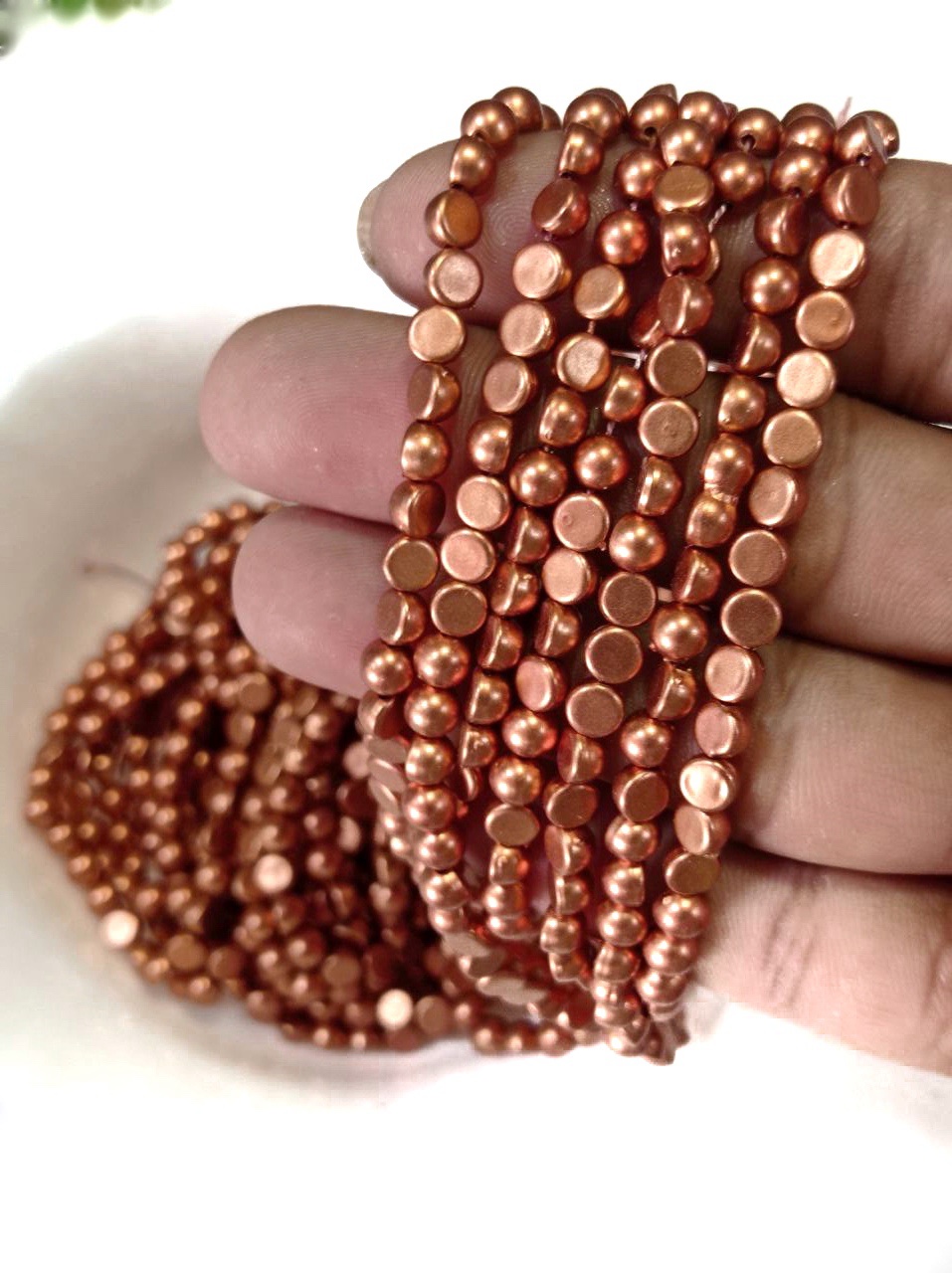 LeCraft Royal Premium Metallic Half Beads – 5mm Faceted Copper for Aari Work & Embroidery(80Beads x 15Lines per bunch)