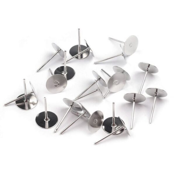 Polished Silver-Tone Earring Stud Posts – Flat Pad Glue-on Bases for DIY Jewelry & Crafting (8mm)
