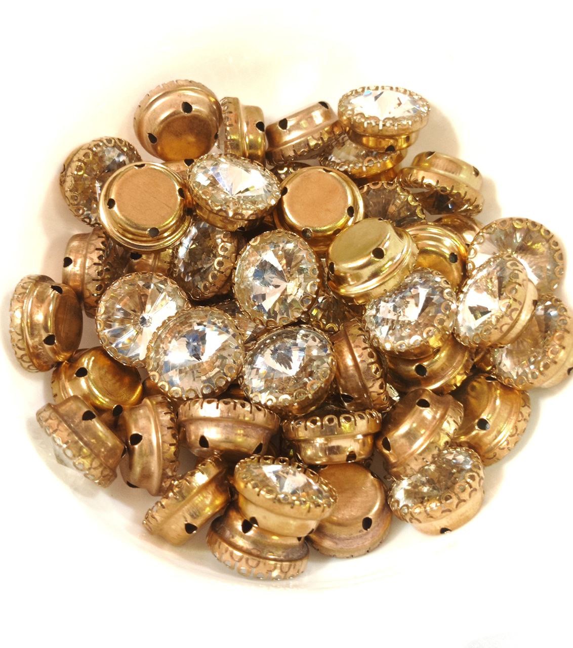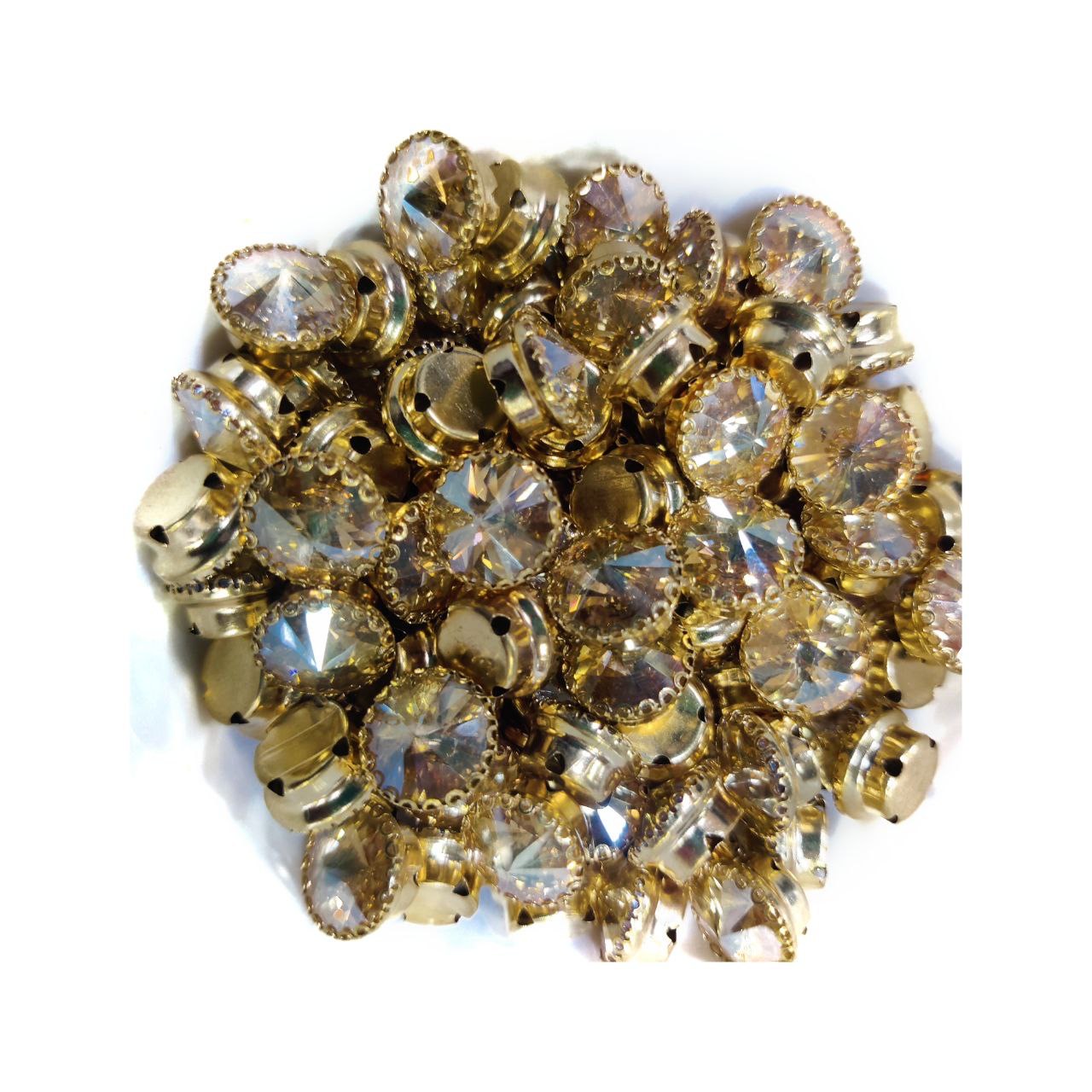 Add timeless brilliance to your designs with these high-grade Round Clip Stones. Featuring a classic chaton-style multi-facet cut, these stones are engineered to catch the light from every angle. The sturdy gold-plated “clip” provides a secure housing, making them a favorite for traditional Indian embroidery and artisanal jewelry crafting.