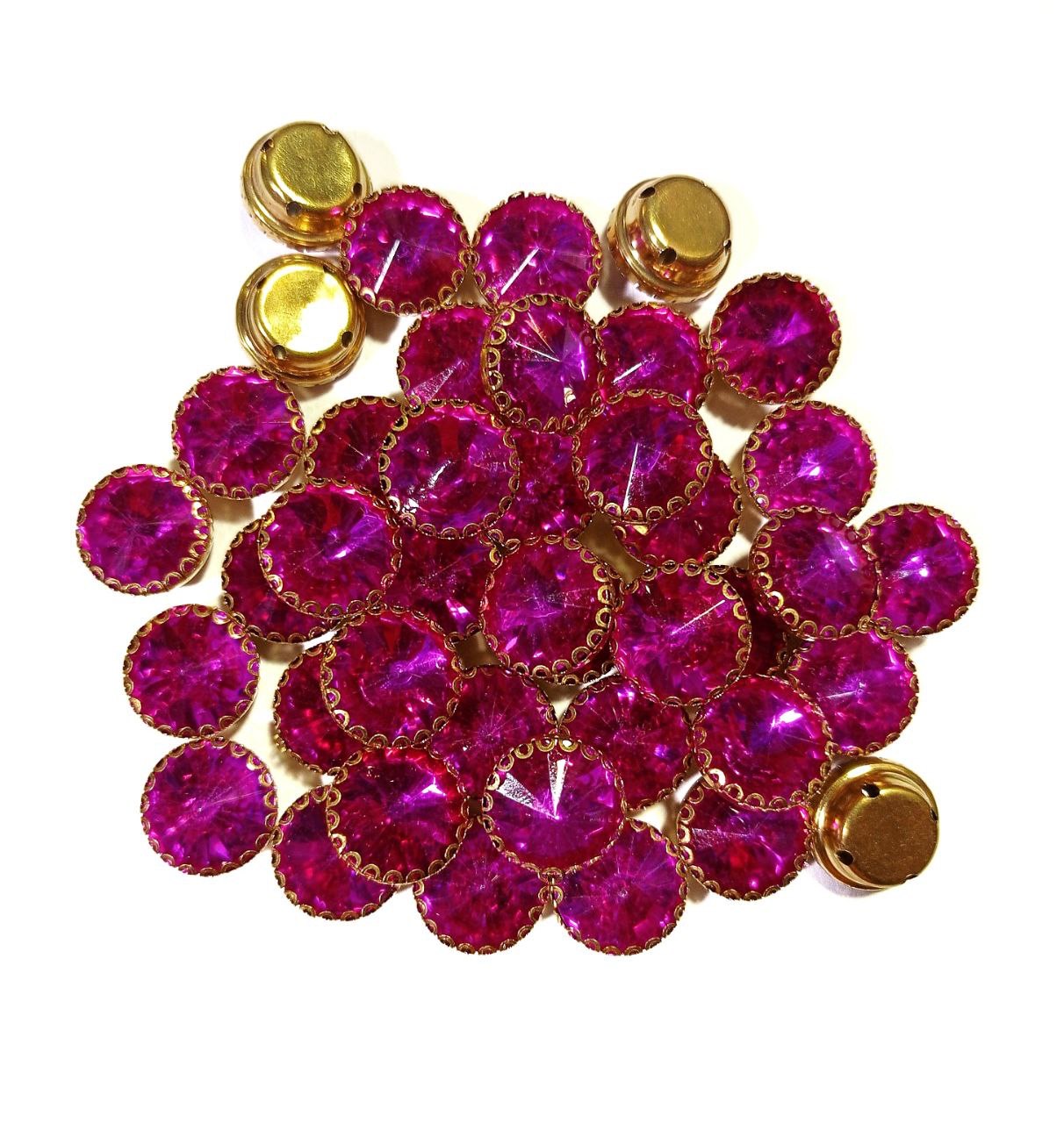 Premium Round Faceted Clip Stones in Gold Claw Setting (12mm)(20Pc)