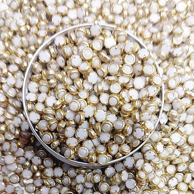 Add a touch of royal Indian heritage to your creations with these exquisite White Kundan Stones. Known for their luminous, glossy finish and classic gold-toned metal borders, these “fitting” Kundans are a staple for traditional ethnic wear and bridal jewelry. Each stone is precision-cut to provide a flat-back surface, making them perfect for sticking or “setting” into intricate patterns. Whether you are working on Aari embroidery, silk thread jewelry, or festive home decor, these stones offer the timeless elegance of Jadau craftsmanship at a professional-grade quality.