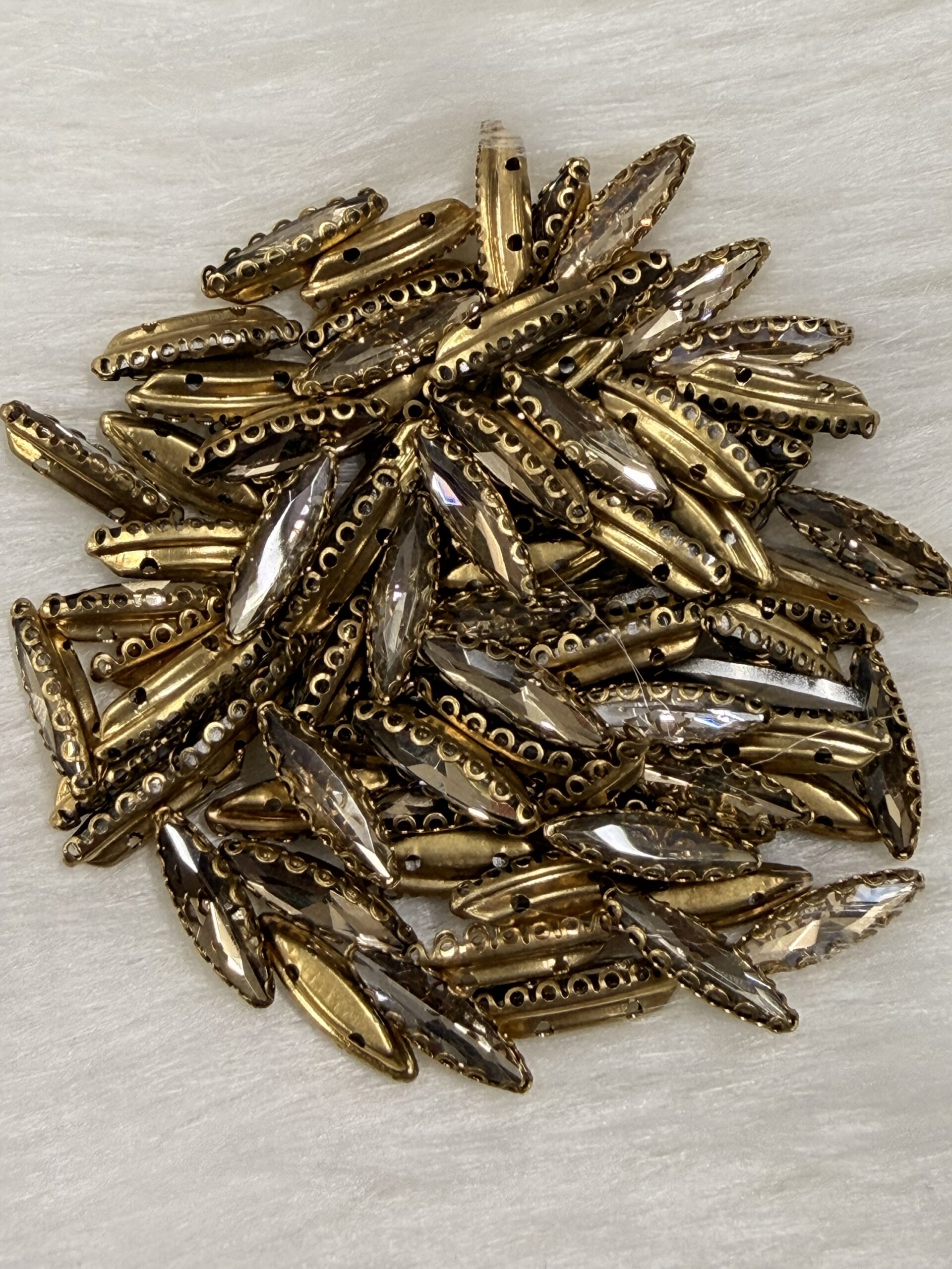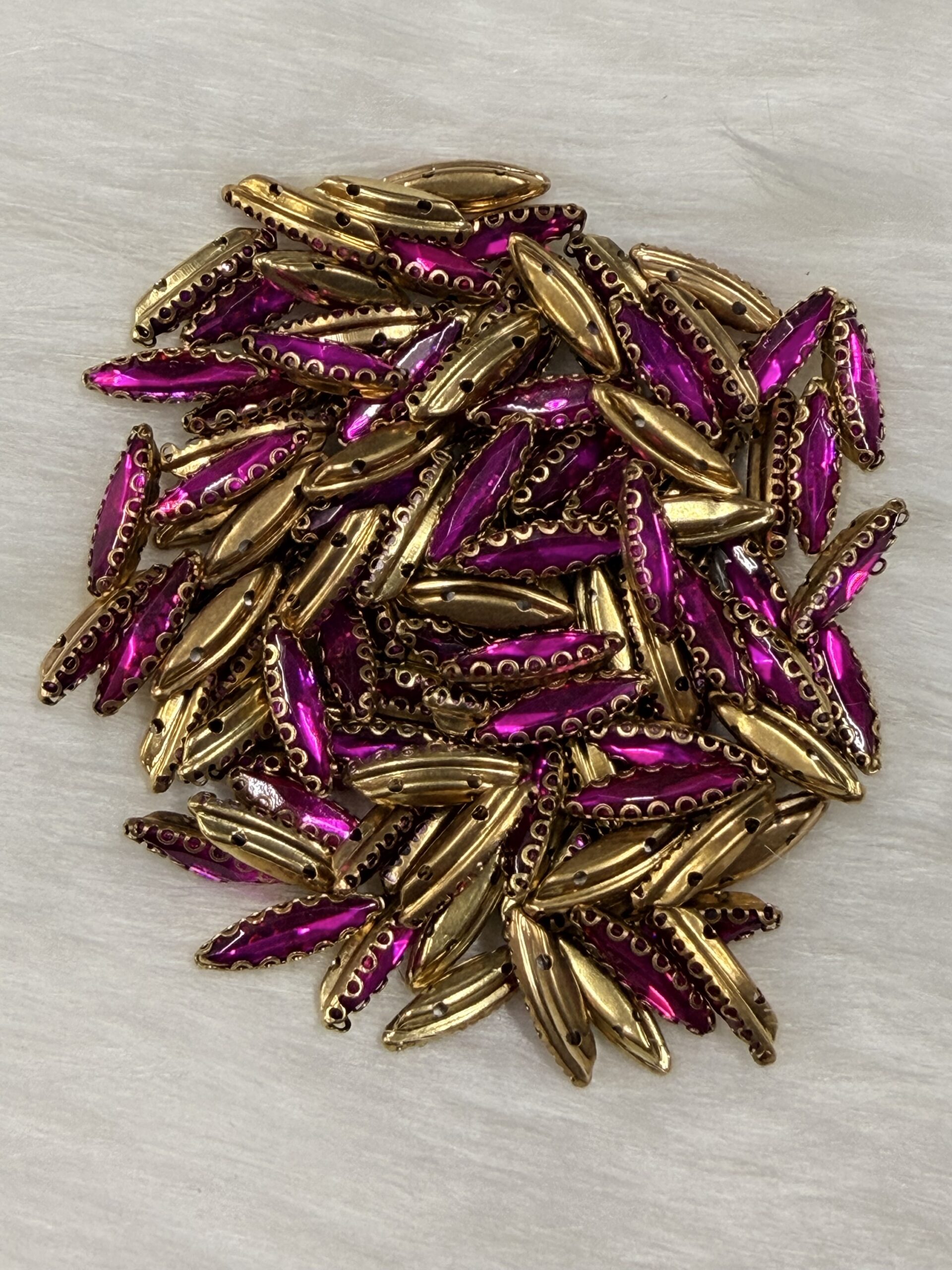 This comprehensive collection of premium clip stones (claw-set crystals) is precision-engineered for the high-detail world of Aari embroidery, Maggam work, and fine jewelry making. Each faceted glass crystal is securely housed in a decorative gold-toned metallic “clip” that provides the necessary elevation and structural integrity for professional zardosi and handcrafted designs.