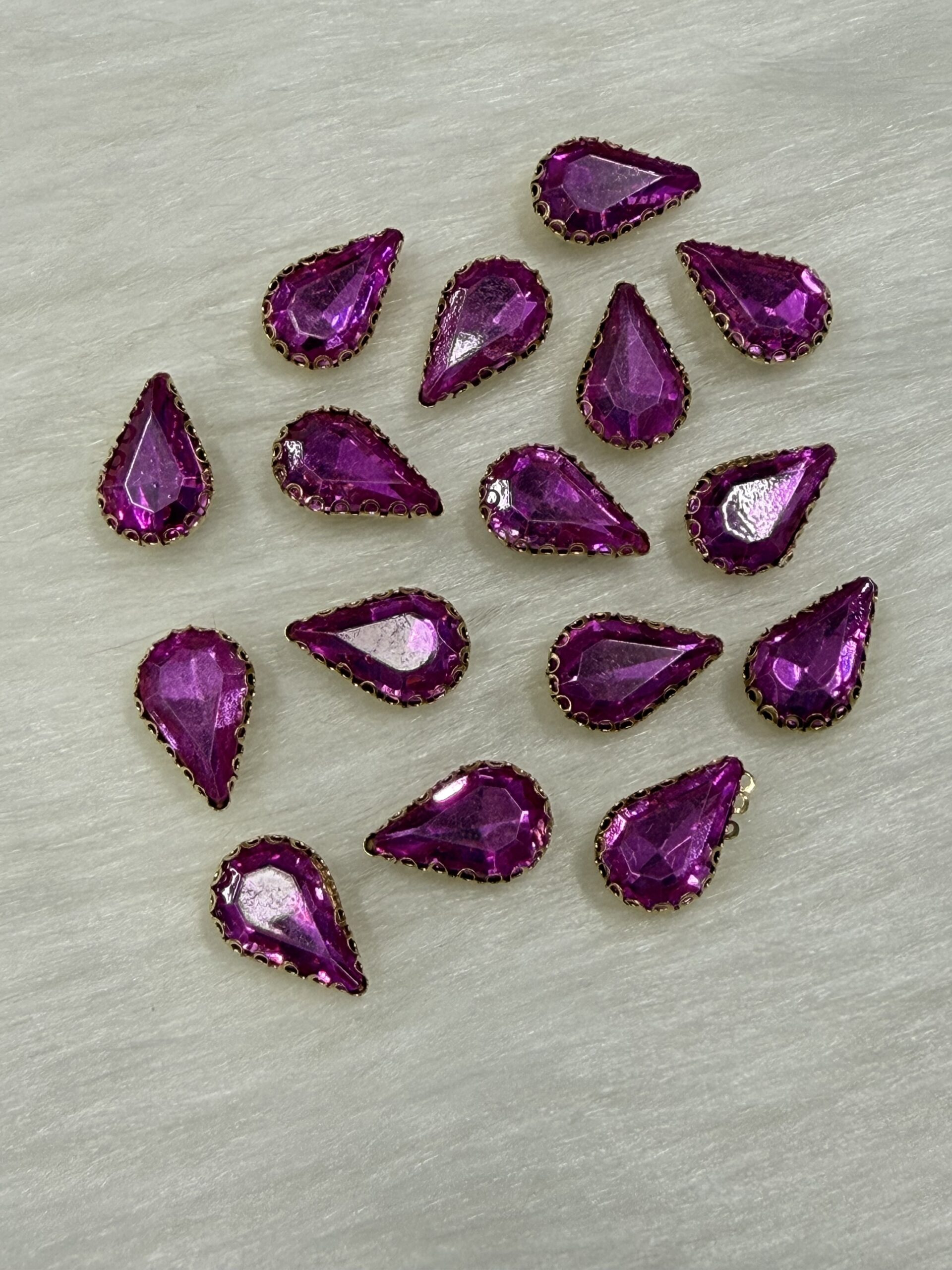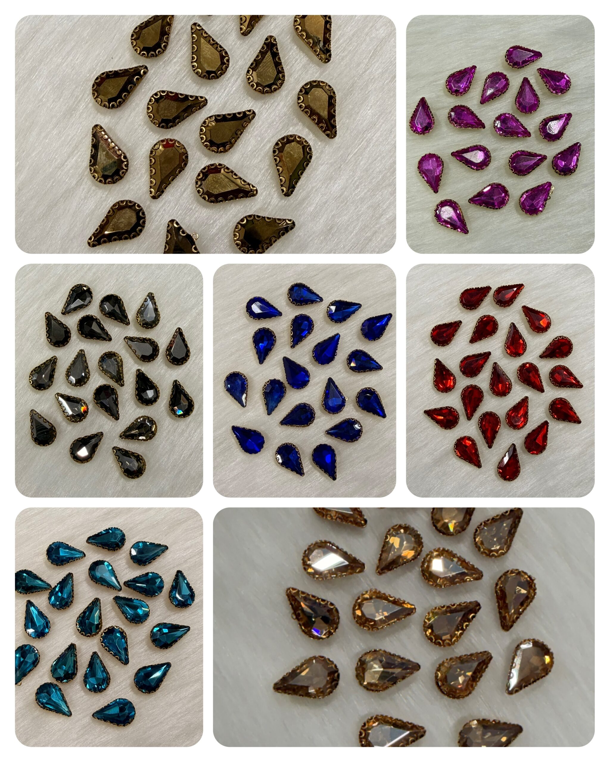 This comprehensive collection of premium clip stones (claw-set crystals) is precision-engineered for the high-detail world of Aari embroidery, Maggam work, and fine jewelry making. Each faceted glass crystal is securely housed in a decorative gold-toned metallic “clip” that provides the necessary elevation and structural integrity for professional zardosi and handcrafted designs.
