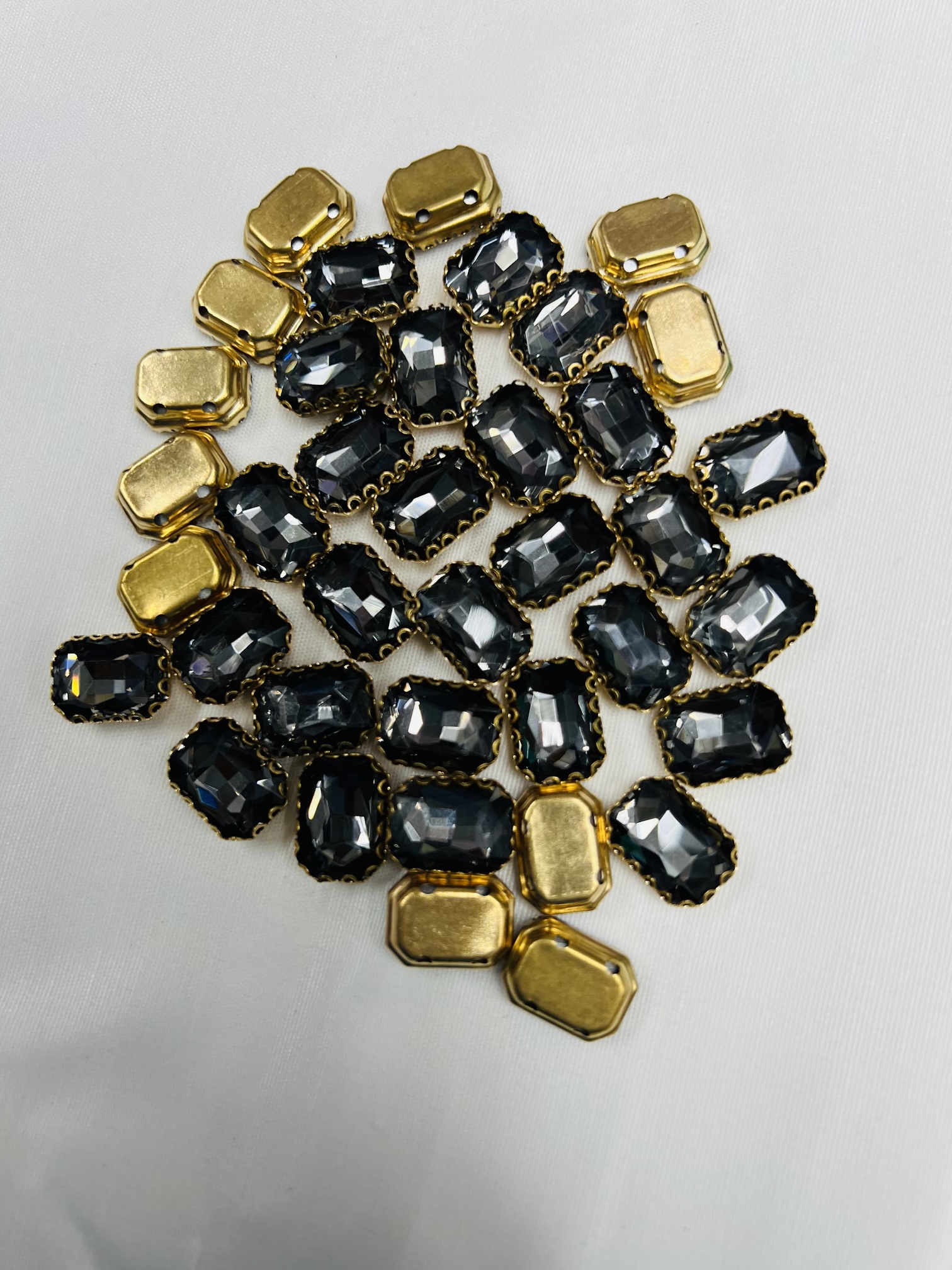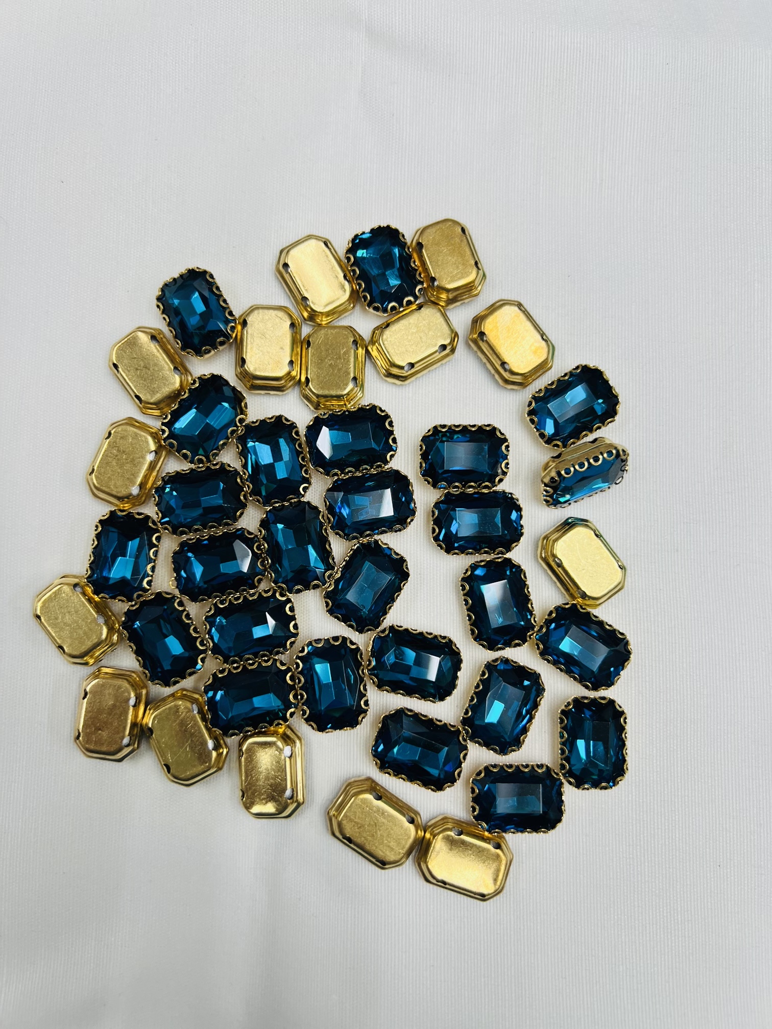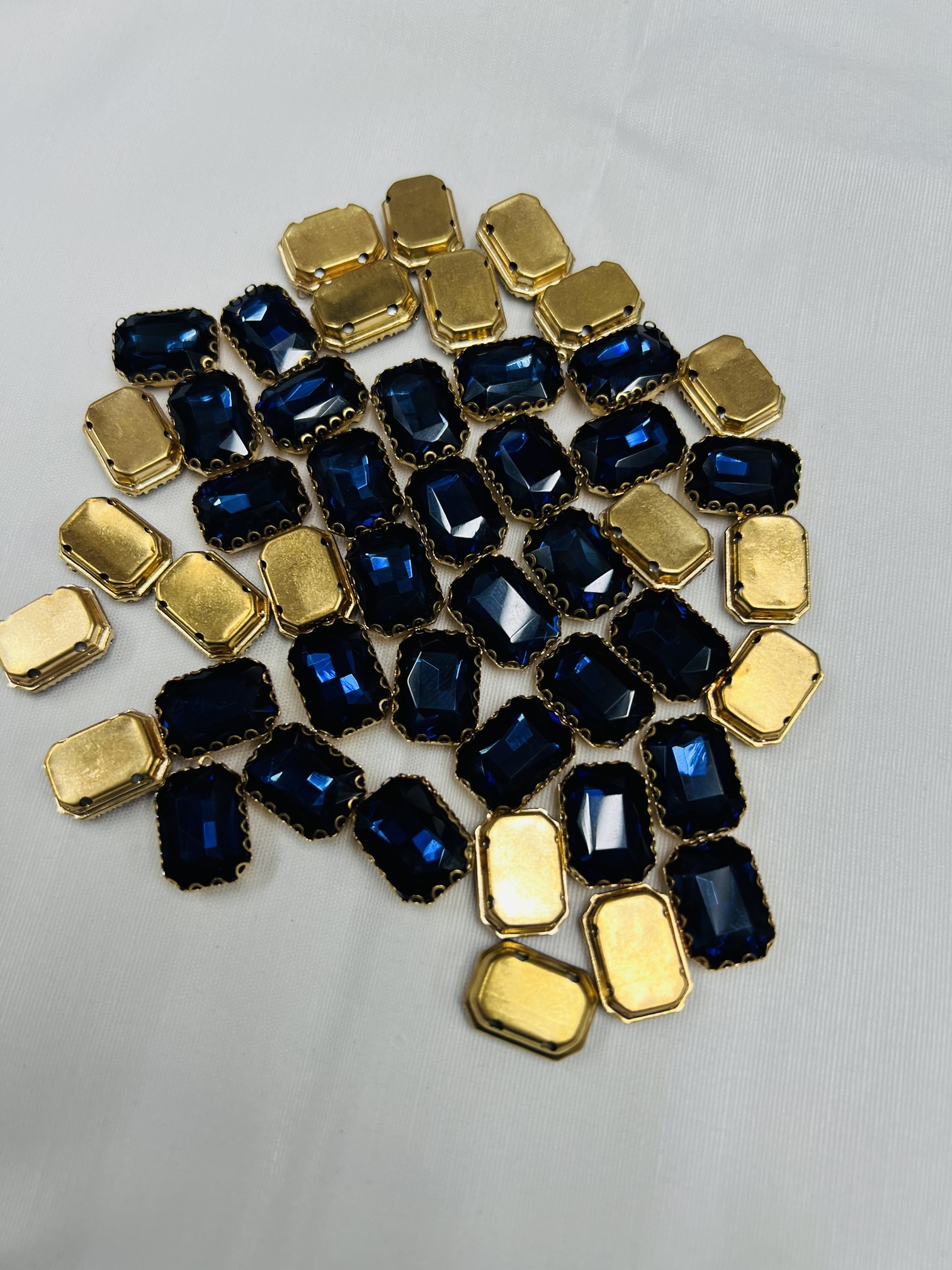 Rectangle Emerald-Cut Clip Stones | Gold Frame Aari & Jewelry Embellishments(10×14)(20Pc)