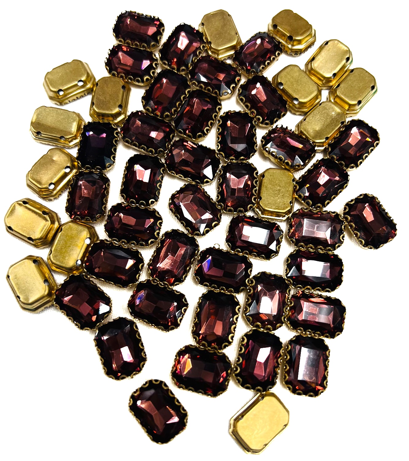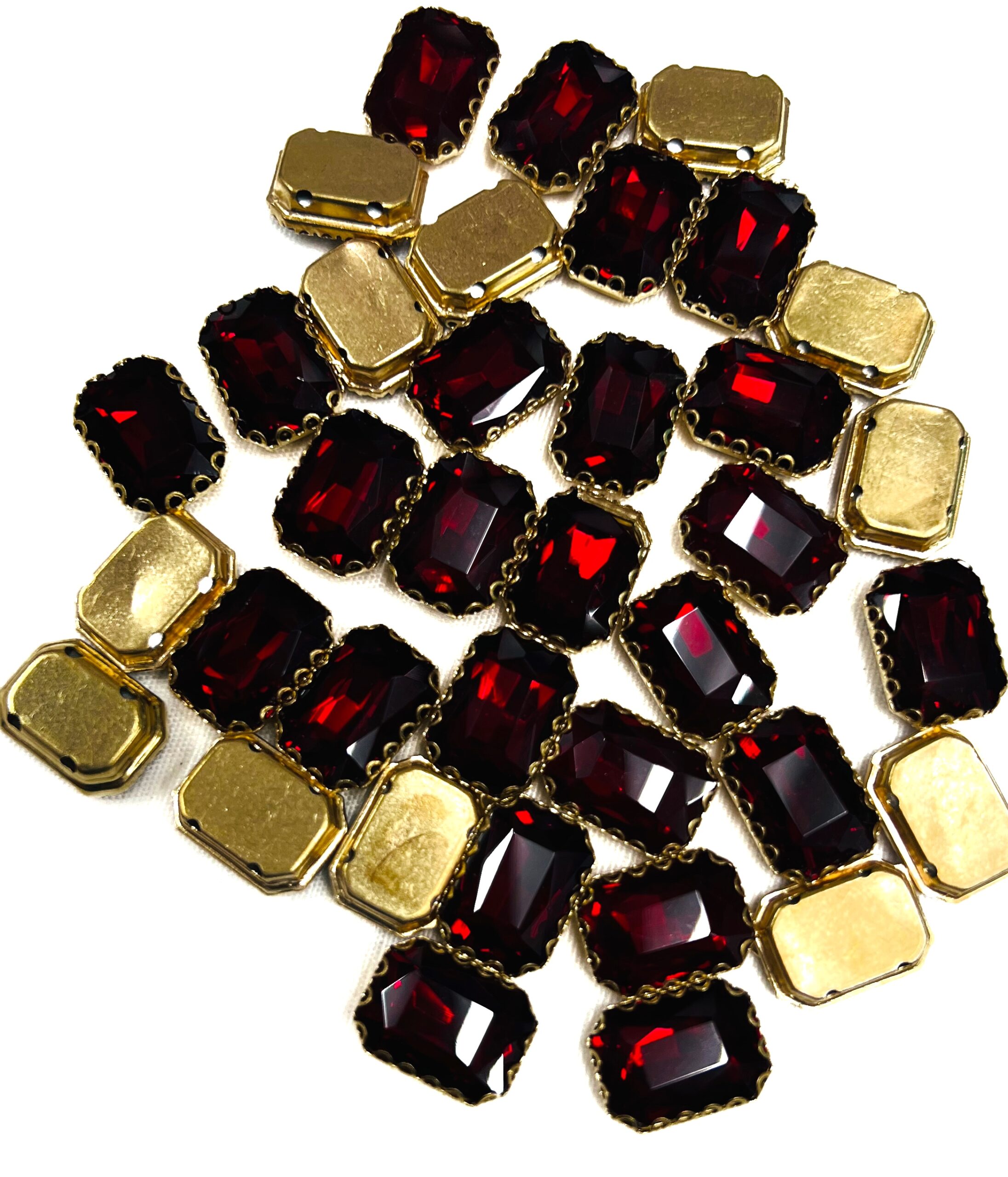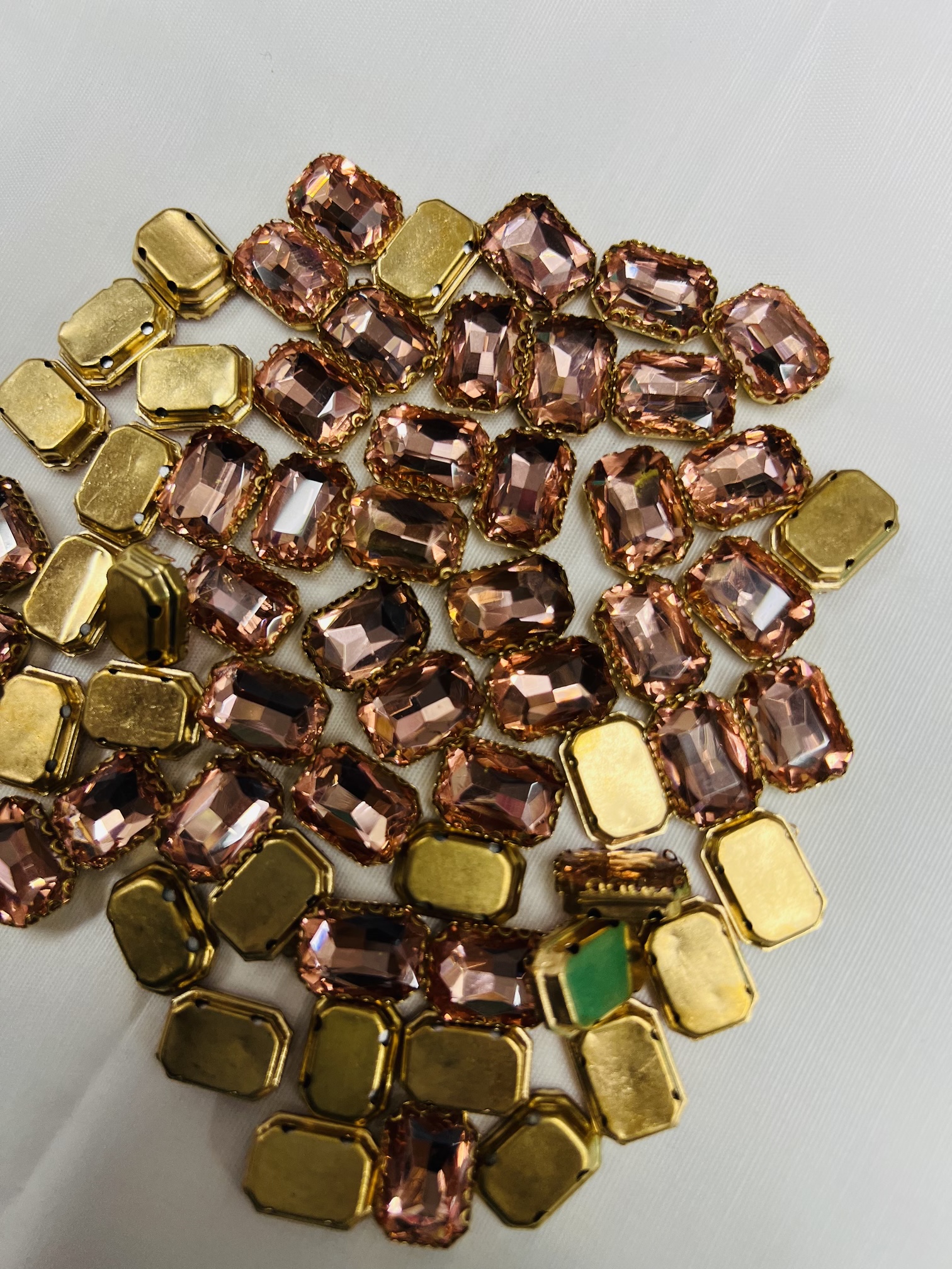 Rectangle Emerald-Cut Clip Stones | Gold Frame Aari & Jewelry Embellishments(10×14)(20Pc)