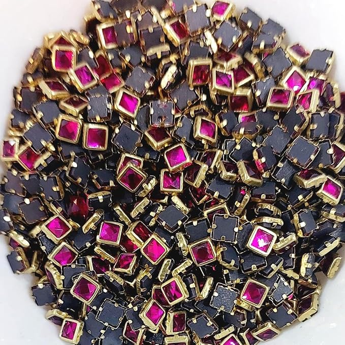 Premium Ceramic /Peach Rose Gold Kundan Stones – Square Rivoli Crystals with Gold Plated Rim for Aari, Zardosi, and Jewelry Making (Pack of 50g)