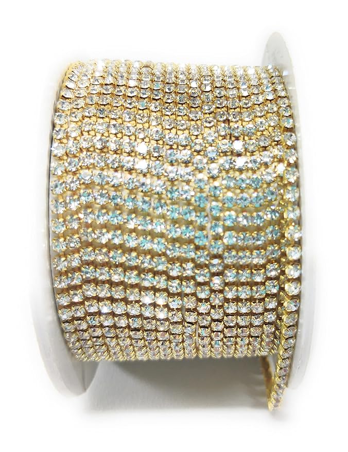 Premium Crystal Stone Chain – Flexible Gold-Tone Rhinestone Cup Chain Trim for Jewelry Making, DIY Crafts, and Garment Embellishments (18PP)