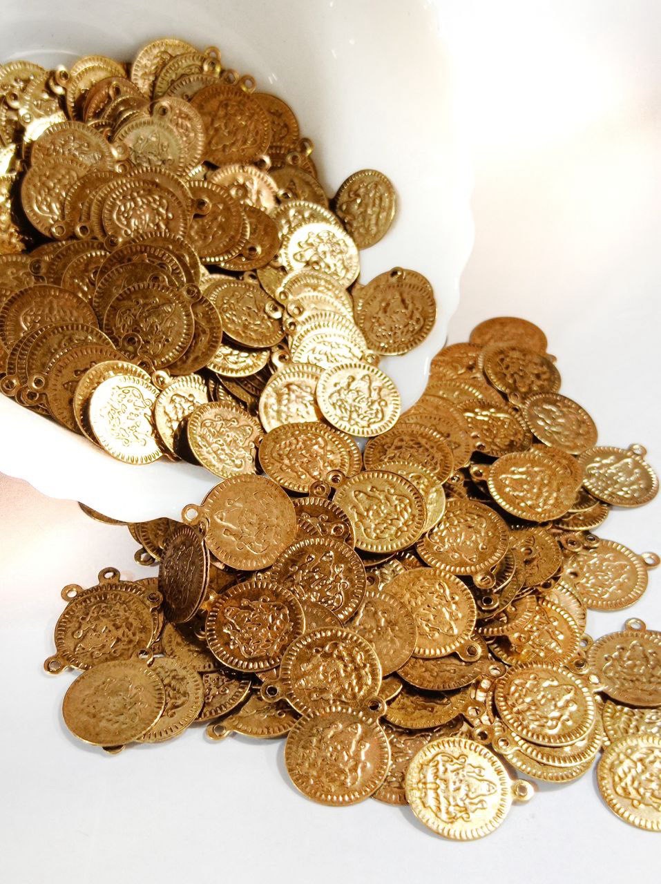Bring a touch of timeless tradition to your craft with these high-quality gold and silver-finished coin pendants. These coins feature a classic embossed design of Goddess Lakshmi, symbolizing prosperity and auspiciousness.