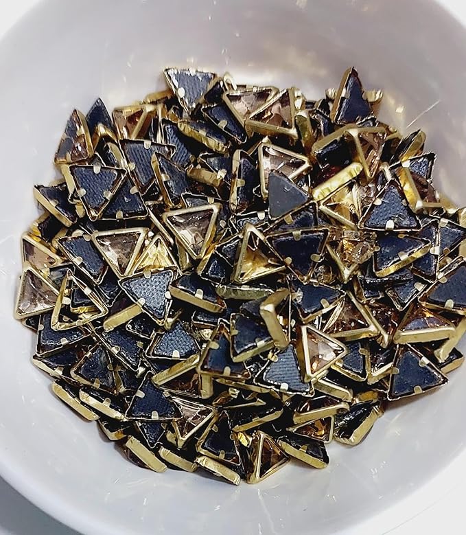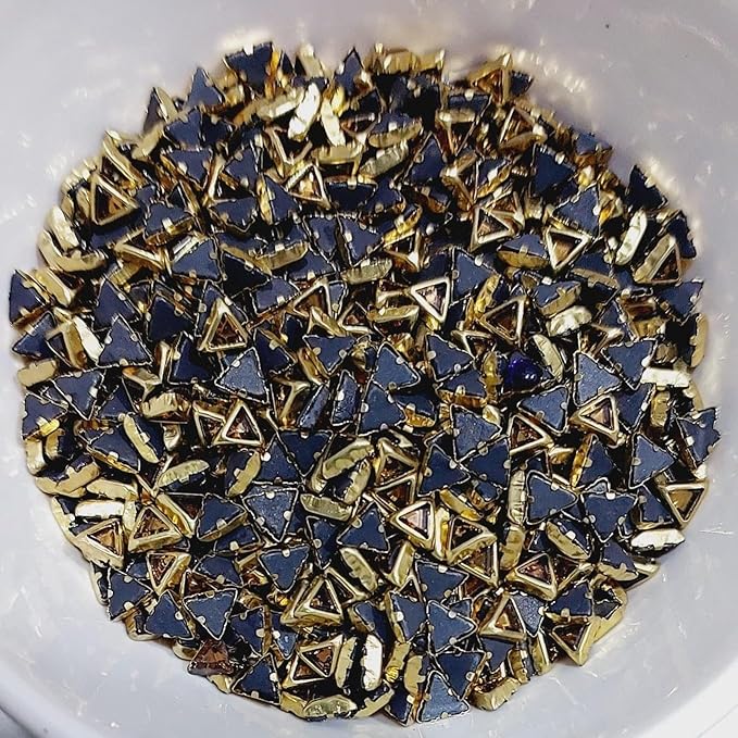 Traditional Gold-Plated Kundan Stones – Faceted Glass Crystals in Brass Metal Settings for Aari Embroidery, Bridal Lehengas, and Jewelry Making(Triangle) (Pack of 50g)