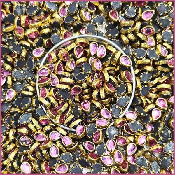 Teardrop Kundan Stones in Gold-Finished Settings (6×8)(50g) – Baby Pink