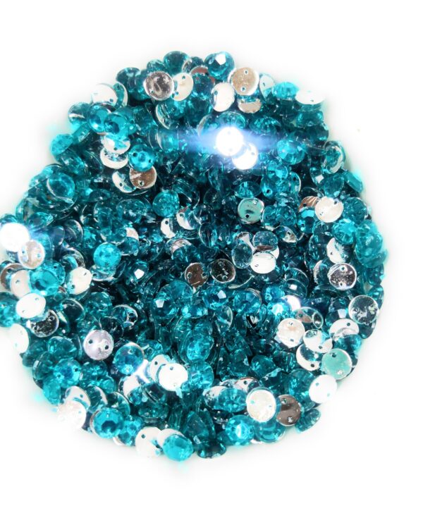 12 Cut Round Flatback Two Holes Sew-On Rhinestone Crystals Acrylic Beads,Kundan Stone with Hole for Sewing Modal Jewellery Making Embroidery and Craft Work 6mm (1040Pc) – Blue-green