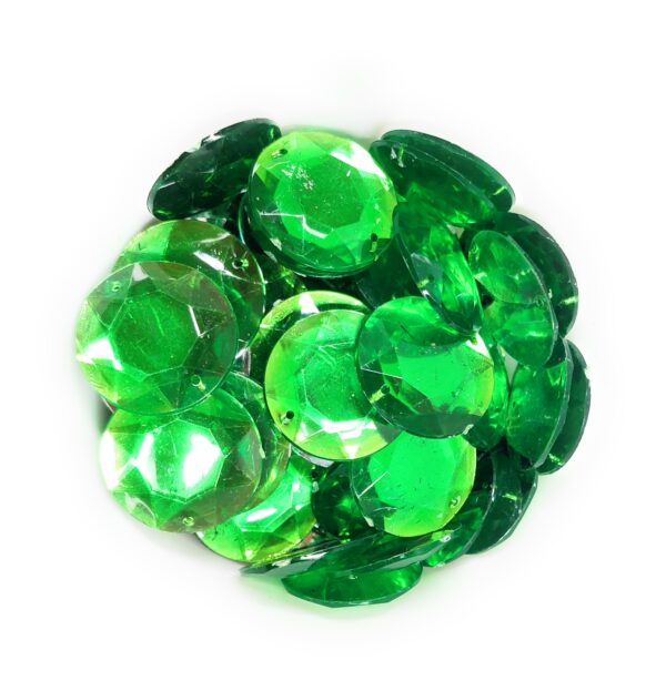 12 Cut Round Flatback Two Holes Sew-On Rhinestone Crystals Acrylic Beads,Kundan Stone with Hole for Sewing Modal Jewellery Making Embroidery and Craft Work 14mm (210Pc) – Green