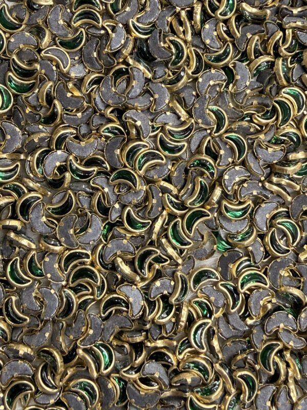 Half-Moon (Crescent) Kundan Stones in Gold-Finished Settings (4×8)(50g) – Dark Green
