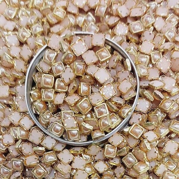 Premium Ceramic /Peach Rose Gold Kundan Stones – Square Rivoli Crystals with Gold Plated Rim for Aari, Zardosi, and Jewelry Making (Pack of 50g) – 4×4