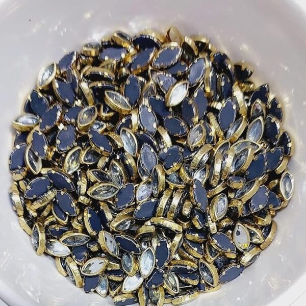 Premium Eye Kundan Stones – White & Champagne Faceted Crystals in Gold-Plated Brass Settings for Aari Embroidery, Bridal Couture, and Jewelry Making(50g) – 4×8