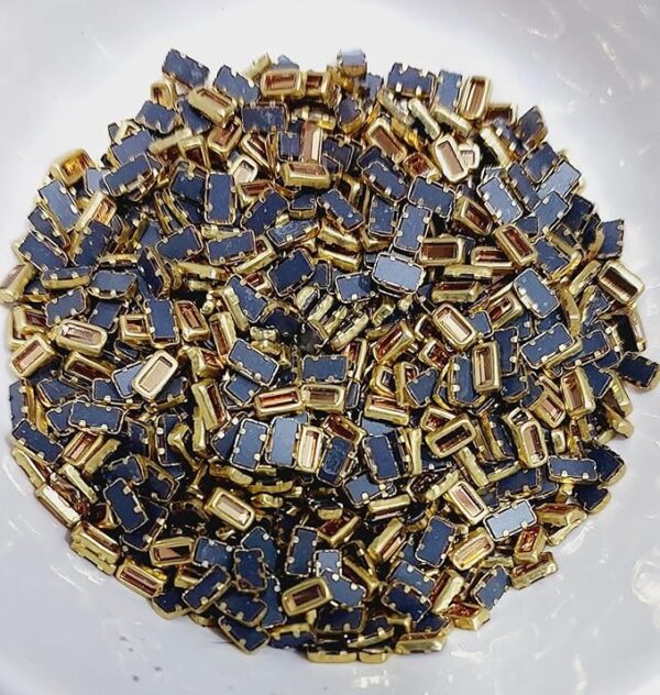 Traditional Gold-Plated Kundan Stones – Faceted Glass Crystals in Brass Metal Settings for Aari Embroidery, Bridal Lehengas, and Jewelry Making(Stick/Rectangle) (Pack of 50g) – 2.5×5