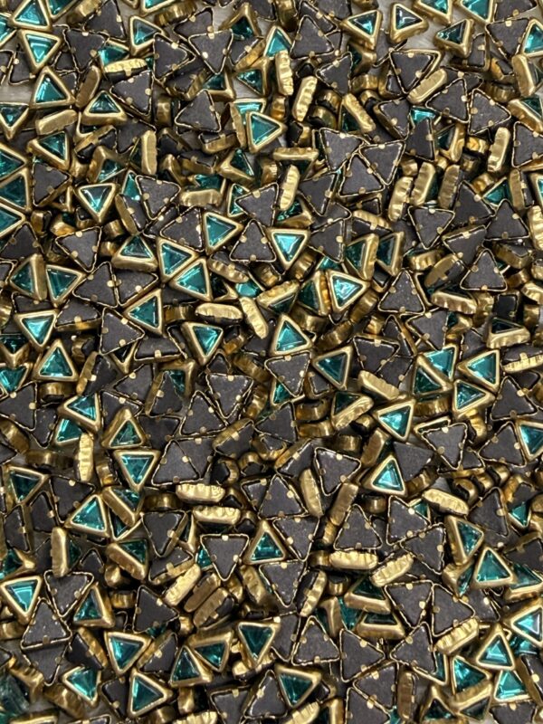 Triangle Shaped Kundan Stones in Gold-Finished Settings (4x4x4)(50g) – Blue-green