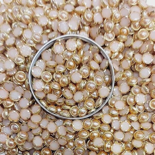 Premium Ceramic /Peach Rose Gold Kundan Stones – Round Rivoli Crystals with Gold Plated Rim for Aari, Zardosi, and Jewelry Making (Pack of 50g) – 4mm