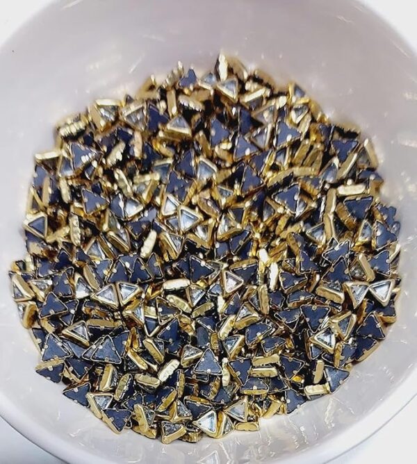 Premium Triangle Kundan Stones – White & Champagne Faceted Crystals in Gold-Plated Brass Settings for Aari Embroidery, Bridal Couture, and Jewelry Making(50g) – 4x4x4