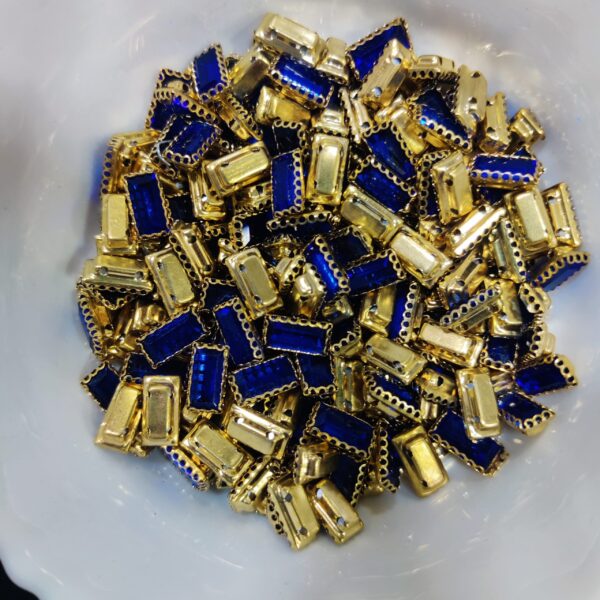 Rectangle Emerald-Cut Clip Stones | Gold Frame Aari & Jewelry Embellishments(10×14)(20Pc) – Deep Sky Blue