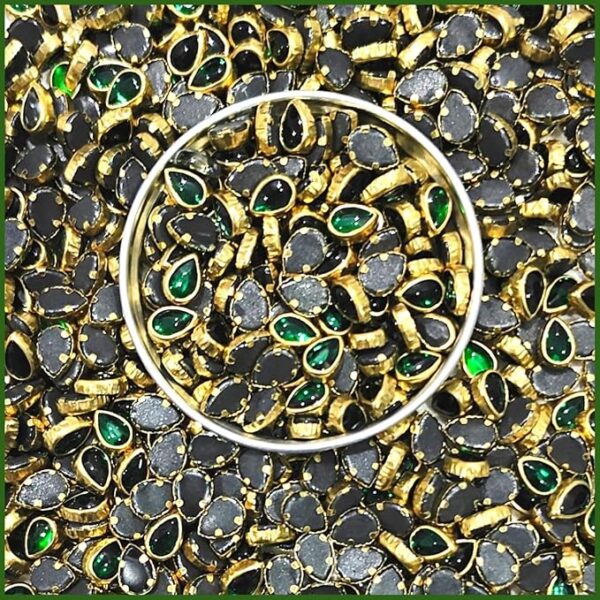 Teardrop Kundan Stones in Gold-Finished Settings (6×8)(50g) – Dark Green