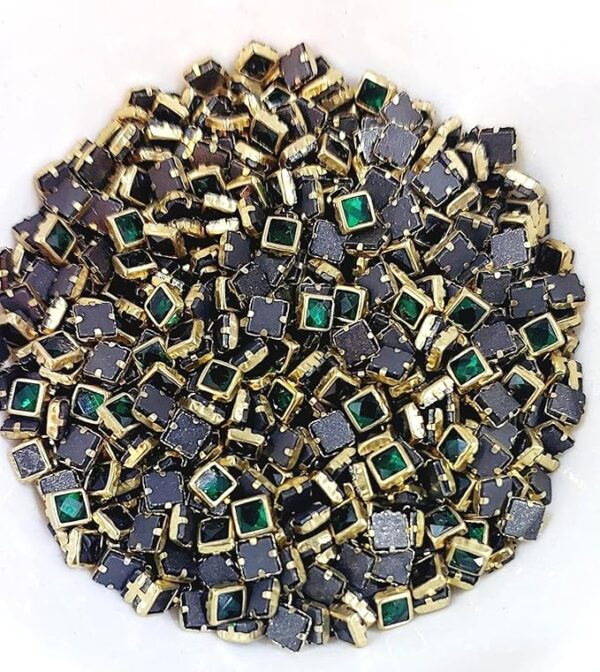 Square Kundan Stones in Gold-Finished Prong Settings (4×4)(50g) – Dark Green