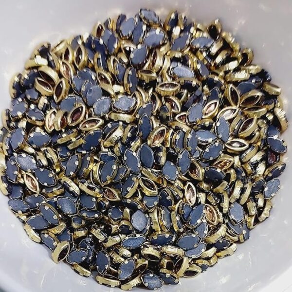 Traditional Gold-Plated Kundan Stones – Faceted Glass Crystals in Brass Metal Settings for Aari Embroidery, Bridal Lehengas, and Jewelry Making(Eye) (Pack of 50g) – 3×6