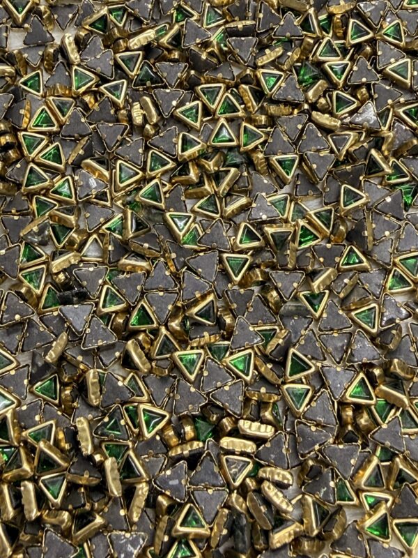 Triangle Shaped Kundan Stones in Gold-Finished Settings (4x4x4)(50g) – Dark Green