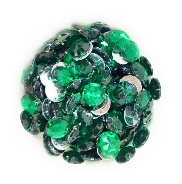 12 Cut Round Flatback Two Holes Sew-On Rhinestone Crystals Acrylic Beads,Kundan Stone with Hole for Sewing Modal Jewellery Making Embroidery and Craft Work 12mm (480Pc) – Dark Green